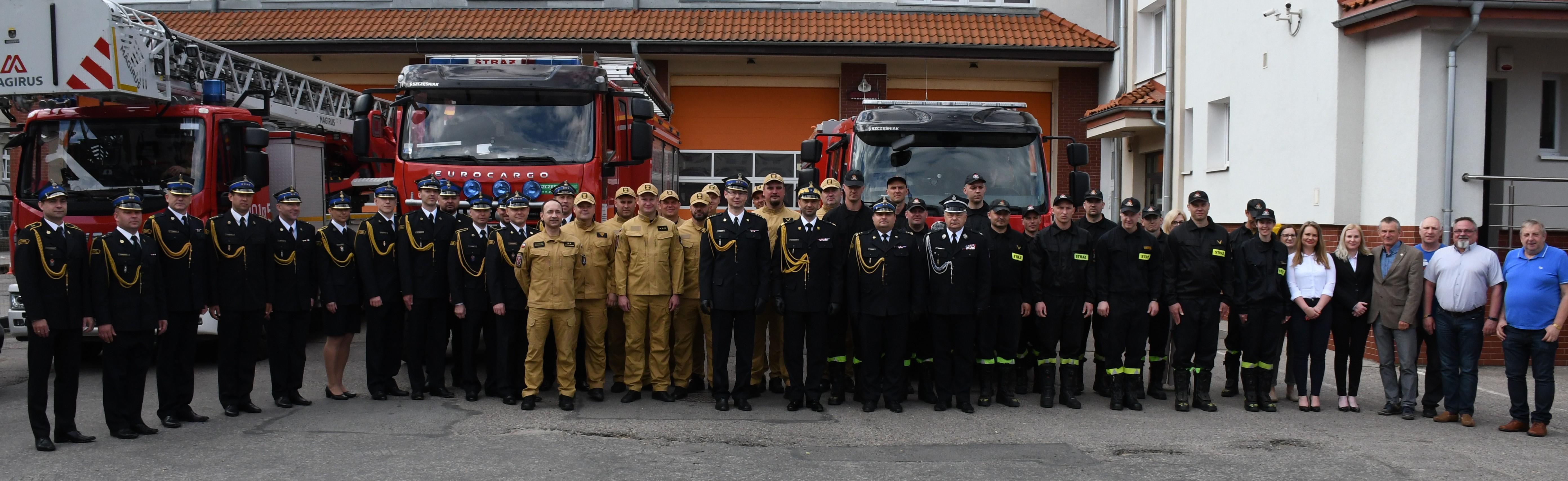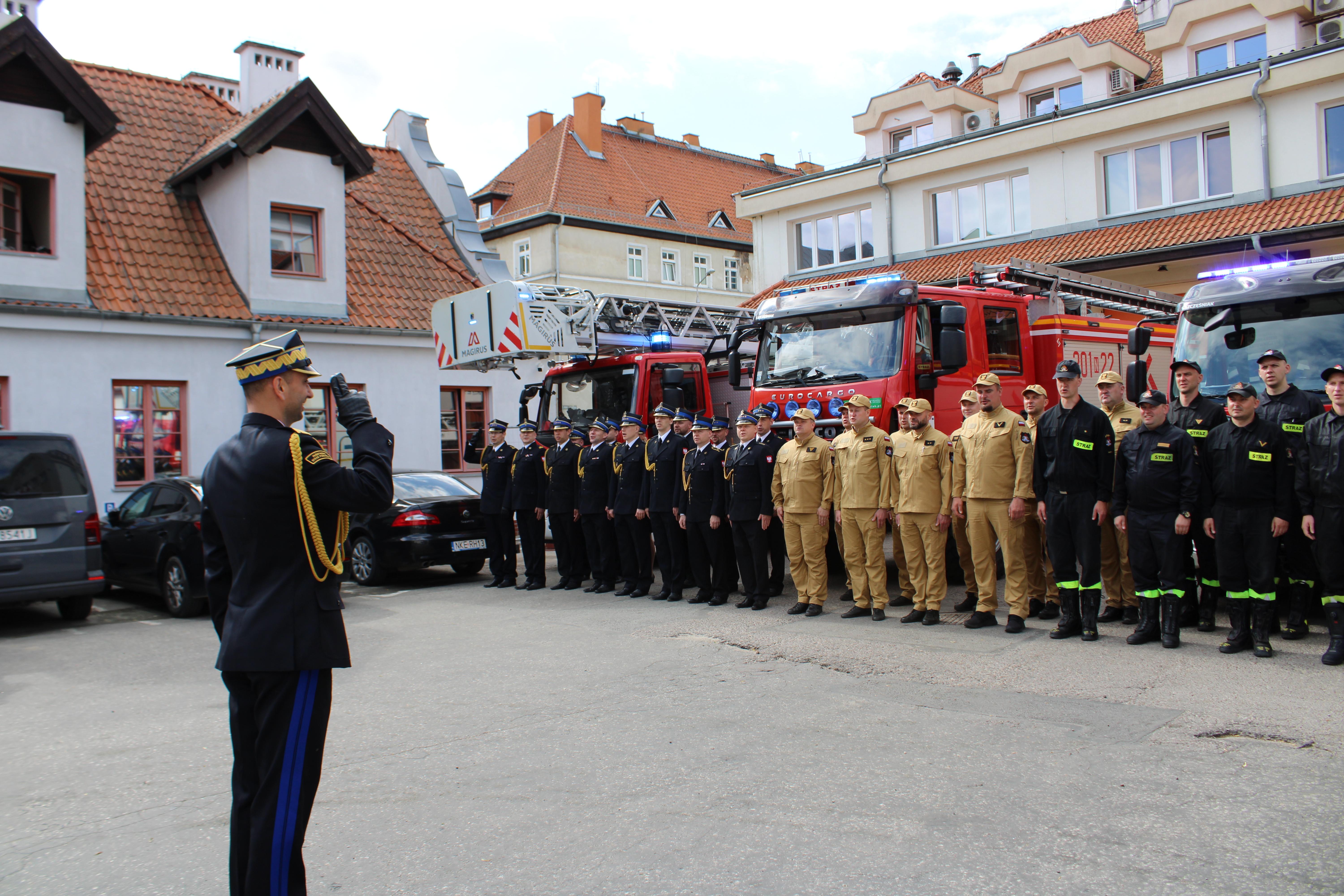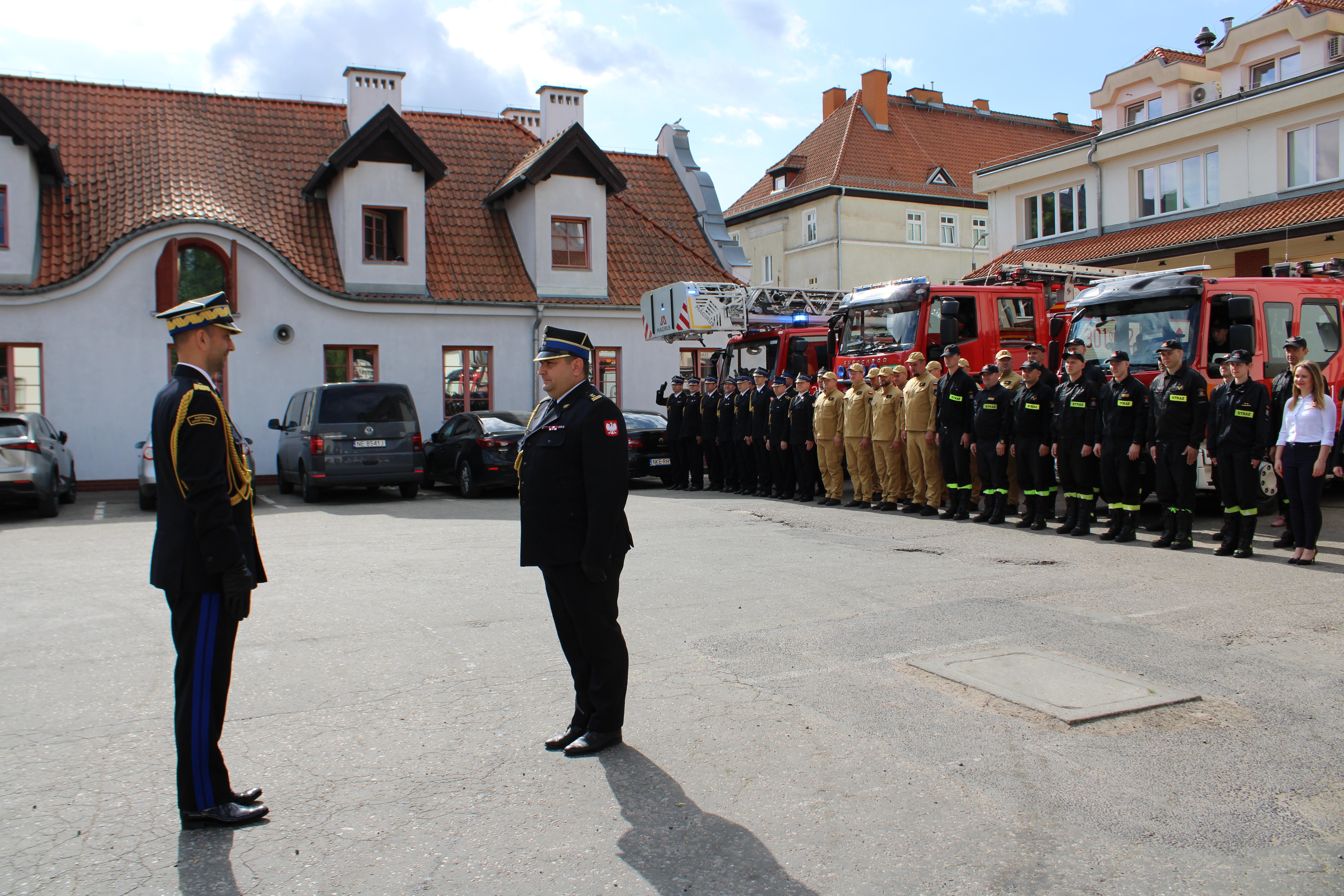 Po meldunku złożonym przez Komendanta Miejskiego PSP w Olsztynie bryg. Łukasza Jasińskiego, Warmińsko-Mazurski Komendant Wojewódzki PSP nadbryg. Michał Kamieniecki przywitał się z pododdziałem ustawionym na tle garażu i pojazdów Jednostki Ratowniczo-Gaśniczej nr 1 Olsztynie.
