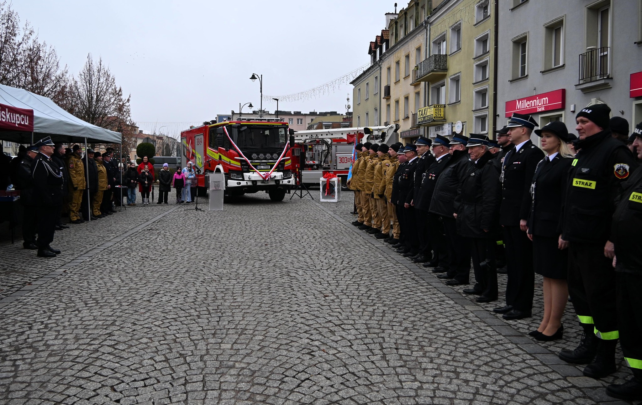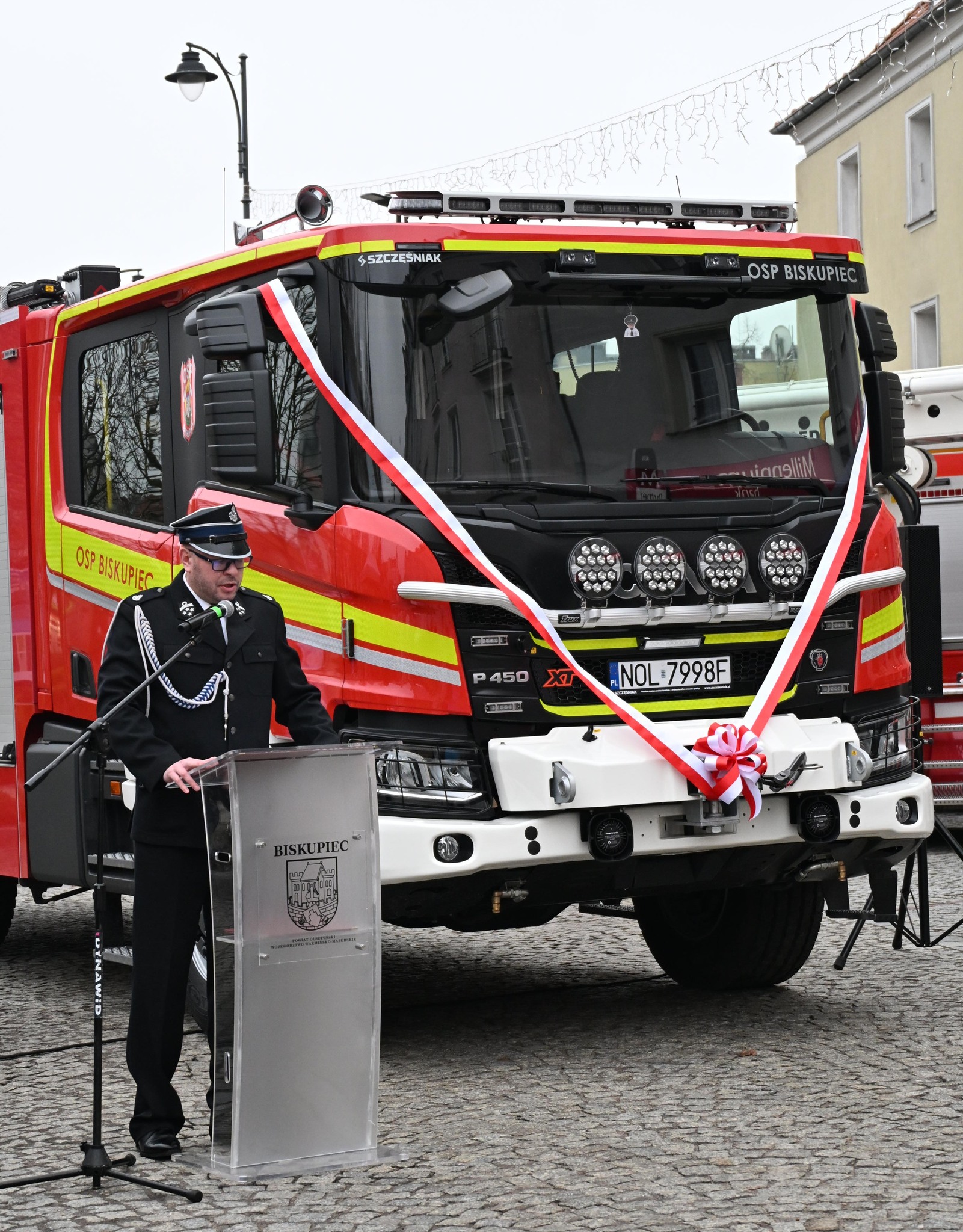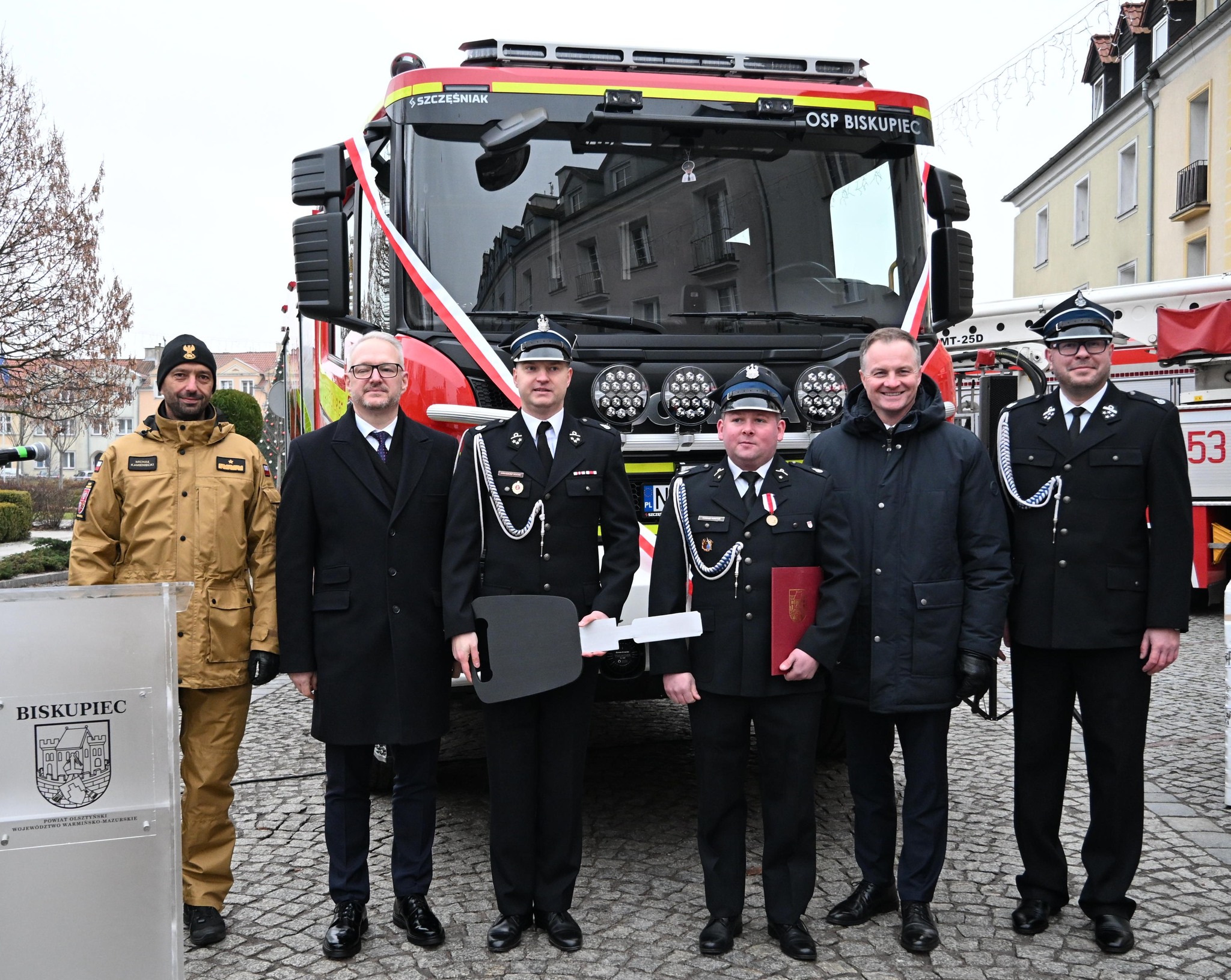 W dniu 8 grudnia, na Placu Wolności w Biskupcu, odbyła się uroczystość przekazania samochodu ratowniczo – gaśniczego dla Ochotniczej Straży Pożarnej w Biskupcu.