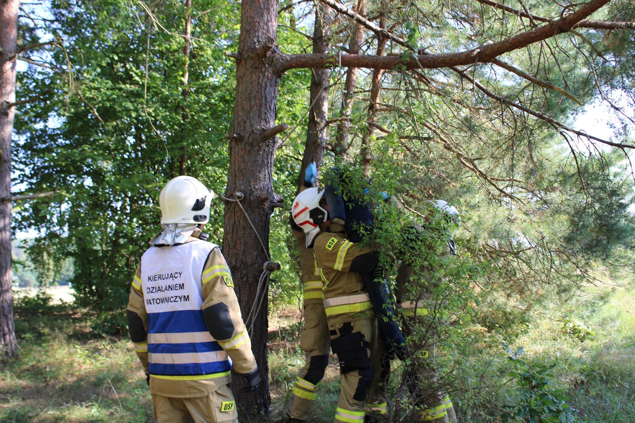 2) ratownictwa medycznego – próba samobójcza, osoba powiesiła się na drzewie. Zadaniem strażaków było bezpieczne podjęcie osoby i udzielenie jej kwalifikowanej pierwszej pomocy.
