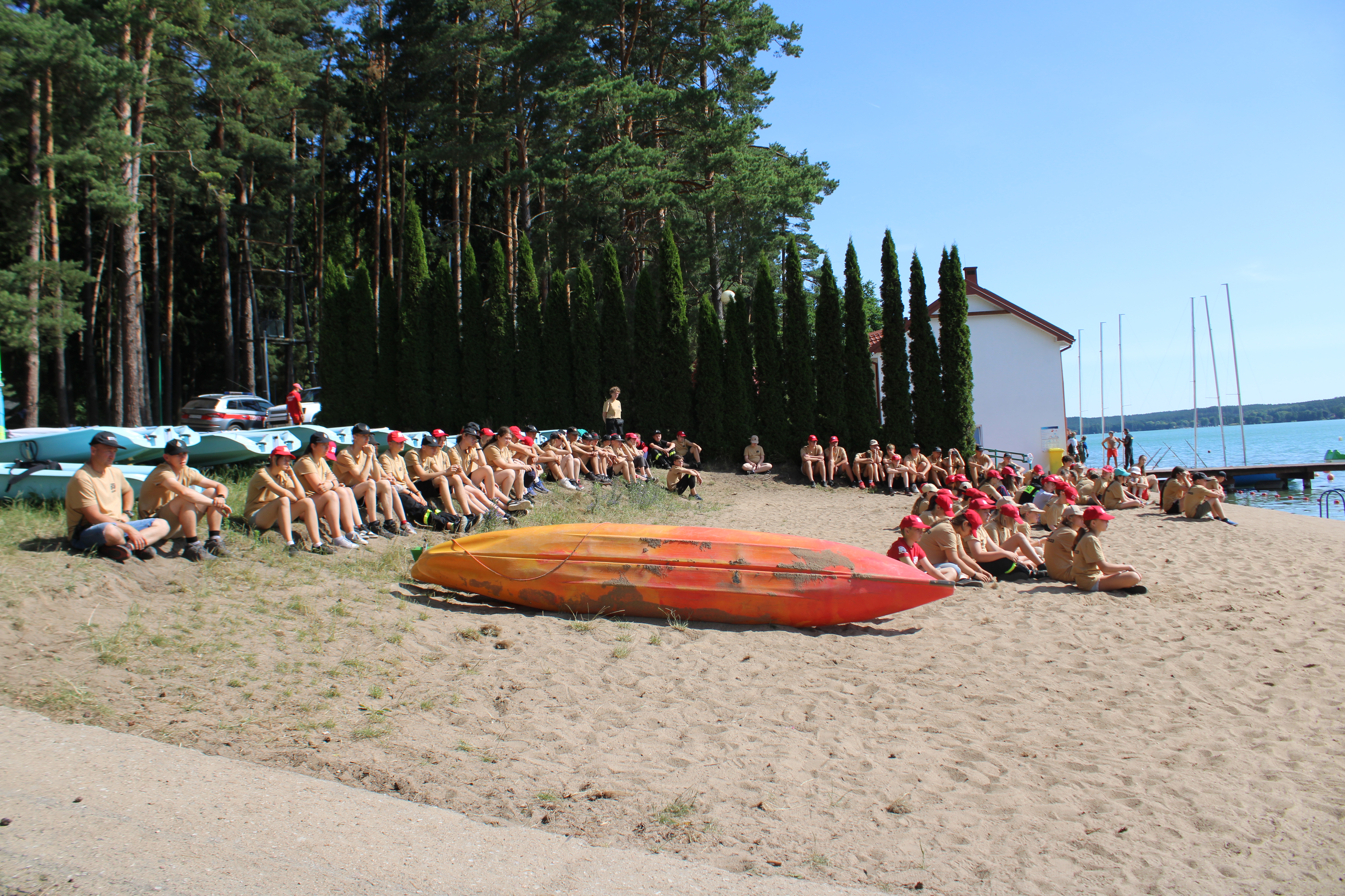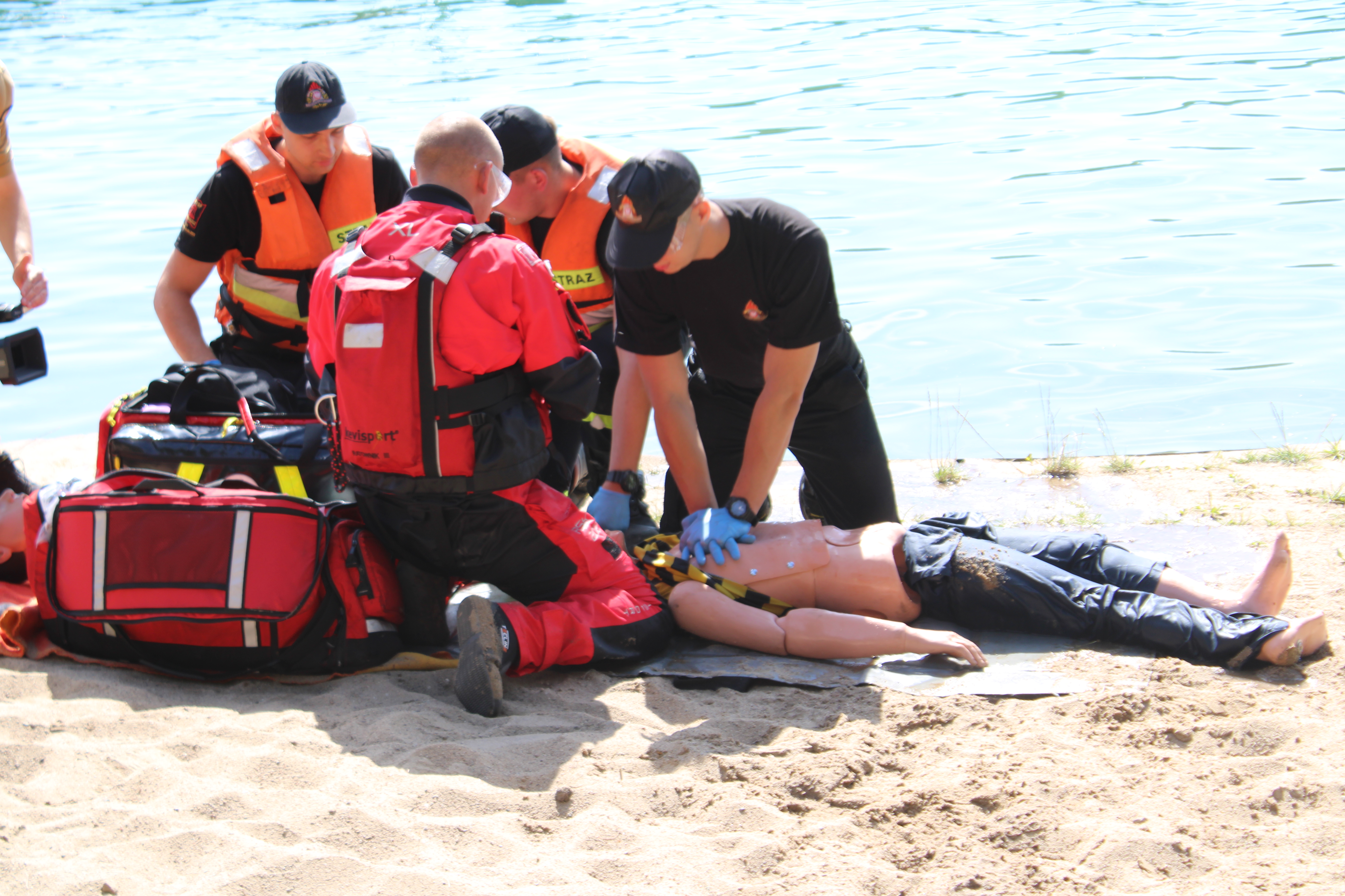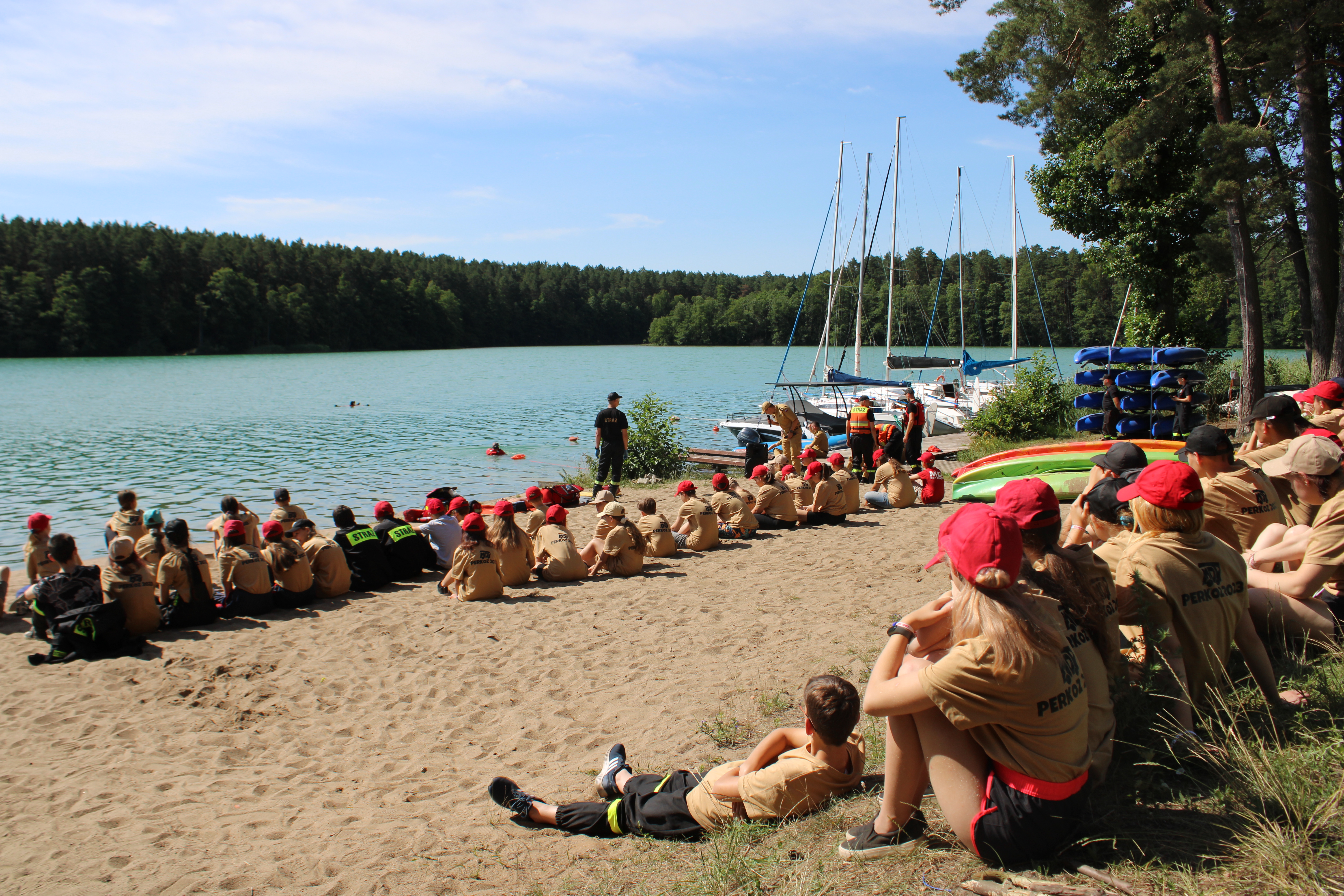 W trakcie wizyty Komendanta Głównego PSP odbył się dedykowany dla uczestników obozu pokaz ratownictwa wodnego zrealizowany przez strażaków z JRG1 Olsztyn, JRG2 Olsztyn oraz jednostki OSP Olsztynek. W ramach ćwiczeń zaprezentowano sprzęt do ratownictwa wodnego, techniki podejmowania osób z wody, pokaz działania nurków ze Specjalistycznej Grupy Ratownictwa Wodno-Nurkowego „Olsztyn” oraz sposób udzielenia Kwalifikowanej Pierwszej Pomocy osobie poszkodowanej wyciągniętej z wody. Omówiono również zasady bezpiecznego wypoczynku nad akwenami. Po pokazie członkowie MDP mogli zapoznać się z przybyłymi na miejsce pojazdami pożarniczymi i ich wyposażeniem.