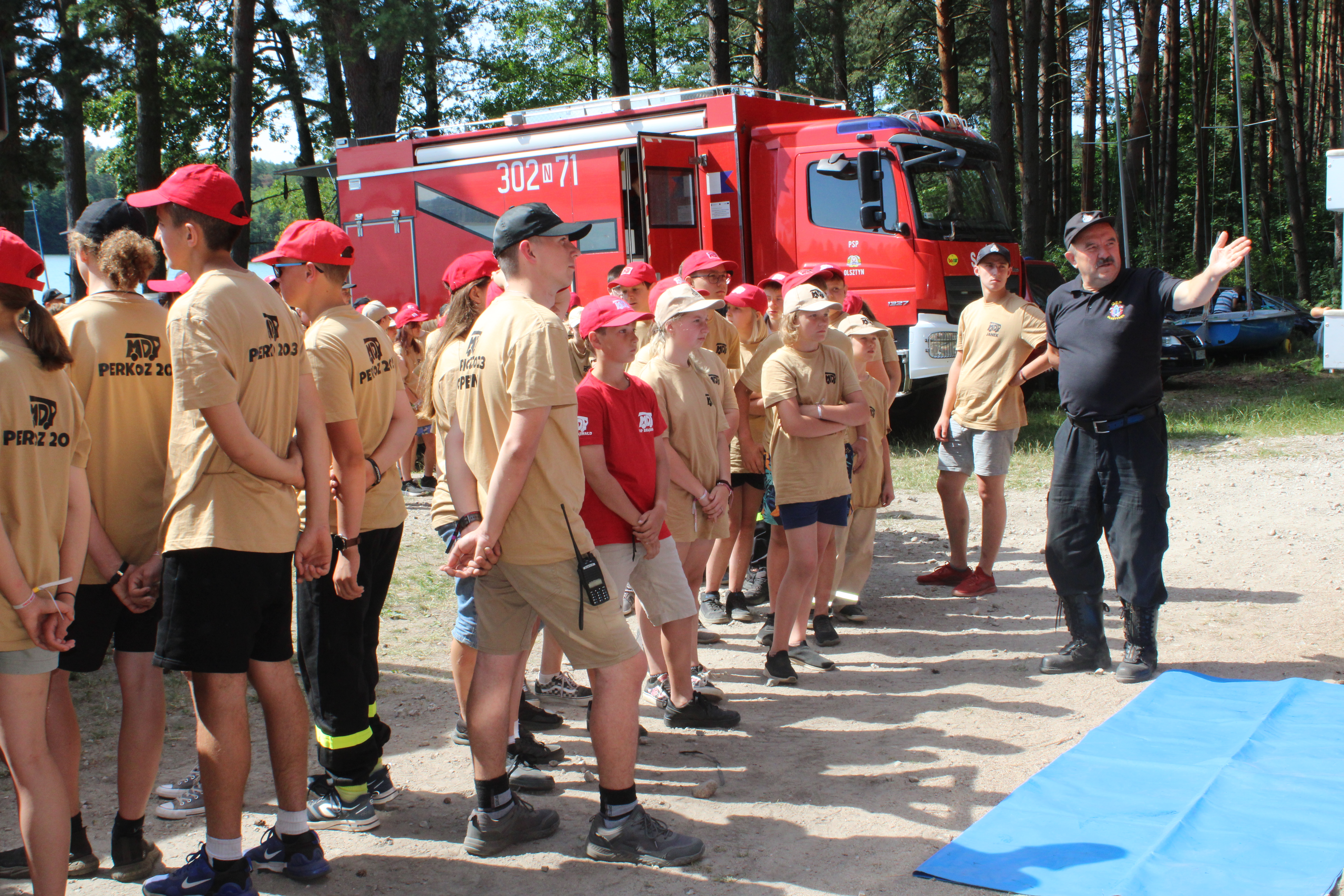W wizytacji obozu MDP towarzyszyli Komendantowi Głównego PSP gen. brygadierowi Andrzejowi Bartkowiakowi, Zastępca Warmińsko-Mazurskiego Komendanta Wojewódzkiego PSP st. bryg. Tomasz Ostrowski oraz Komendant Miejski PSP w Olsztynie bryg. Jarosław Gryciuk.