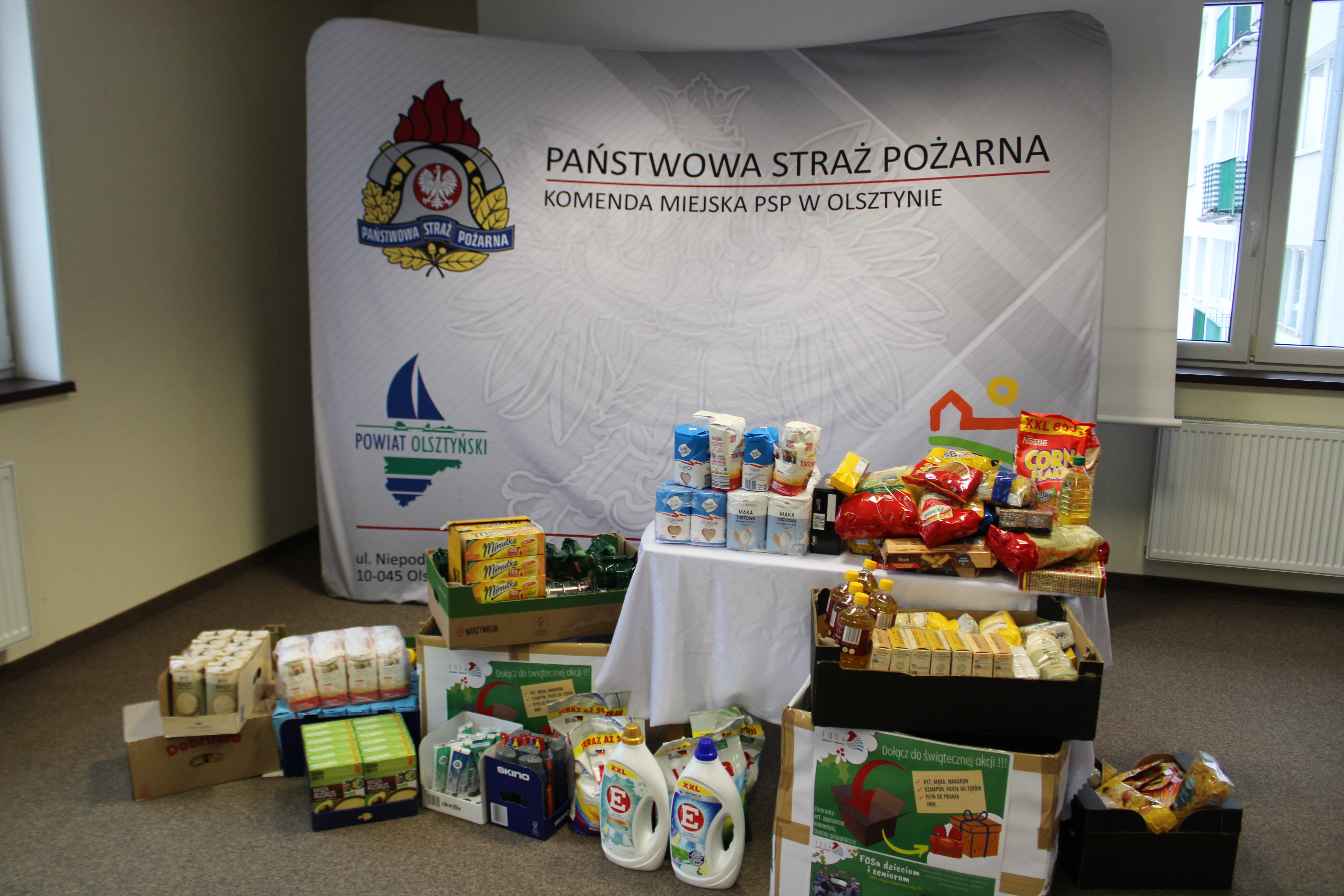 W pomoc strażacy oraz pracownicy cywilni KM PSP Olsztyn włączyli się już dziesiąty rokz rzędu. Kolejny raz udało się zebrać dość pokaźną ilość produktów, które w tym dniu przekazał przedstawicielom Federacji FOSa Komendant Miejski PSP w Olsztynie bryg. Łukasz Jasiński wraz z zastępcą st. bryg. Sergiuszem Dłuskim. W przekazaniu udział również wzięli również dowódcy jednostek ratowniczo-gaśniczych i naczelnik Wydziału Organizacyjno – Kadrowego.