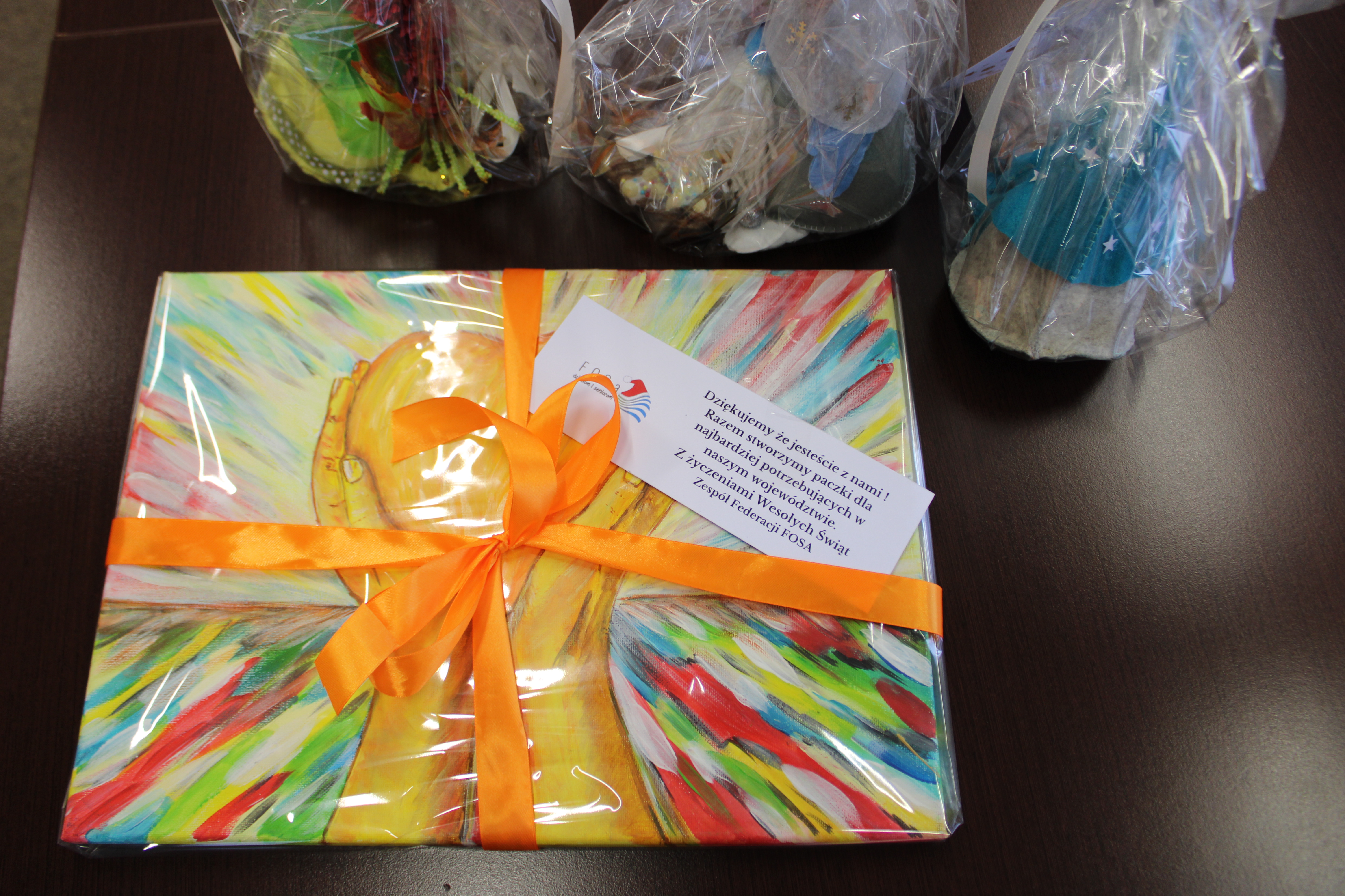 W ramach podziękowań otrzymaliśmy upominki świąteczne wykonane przez wolontariuszy Federacji FOSa.