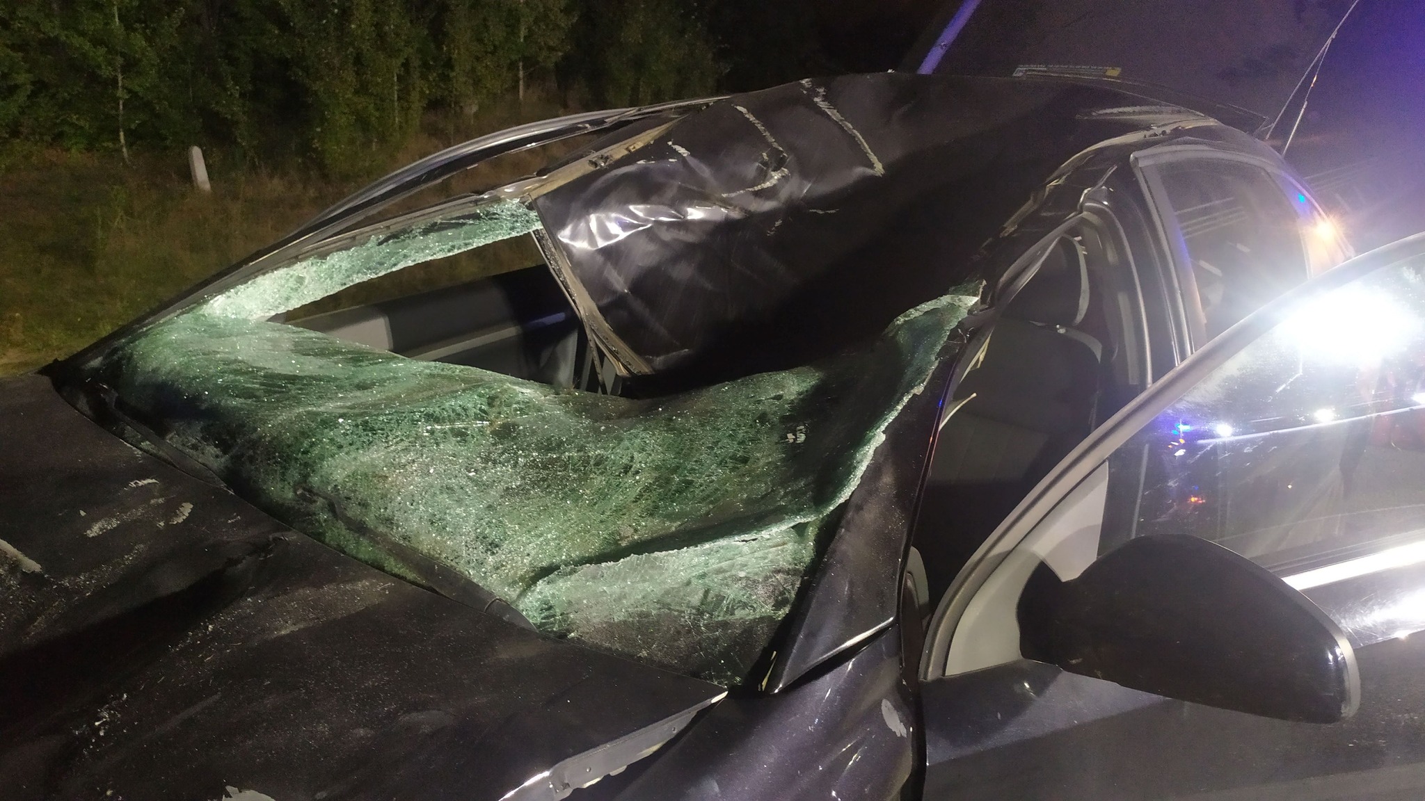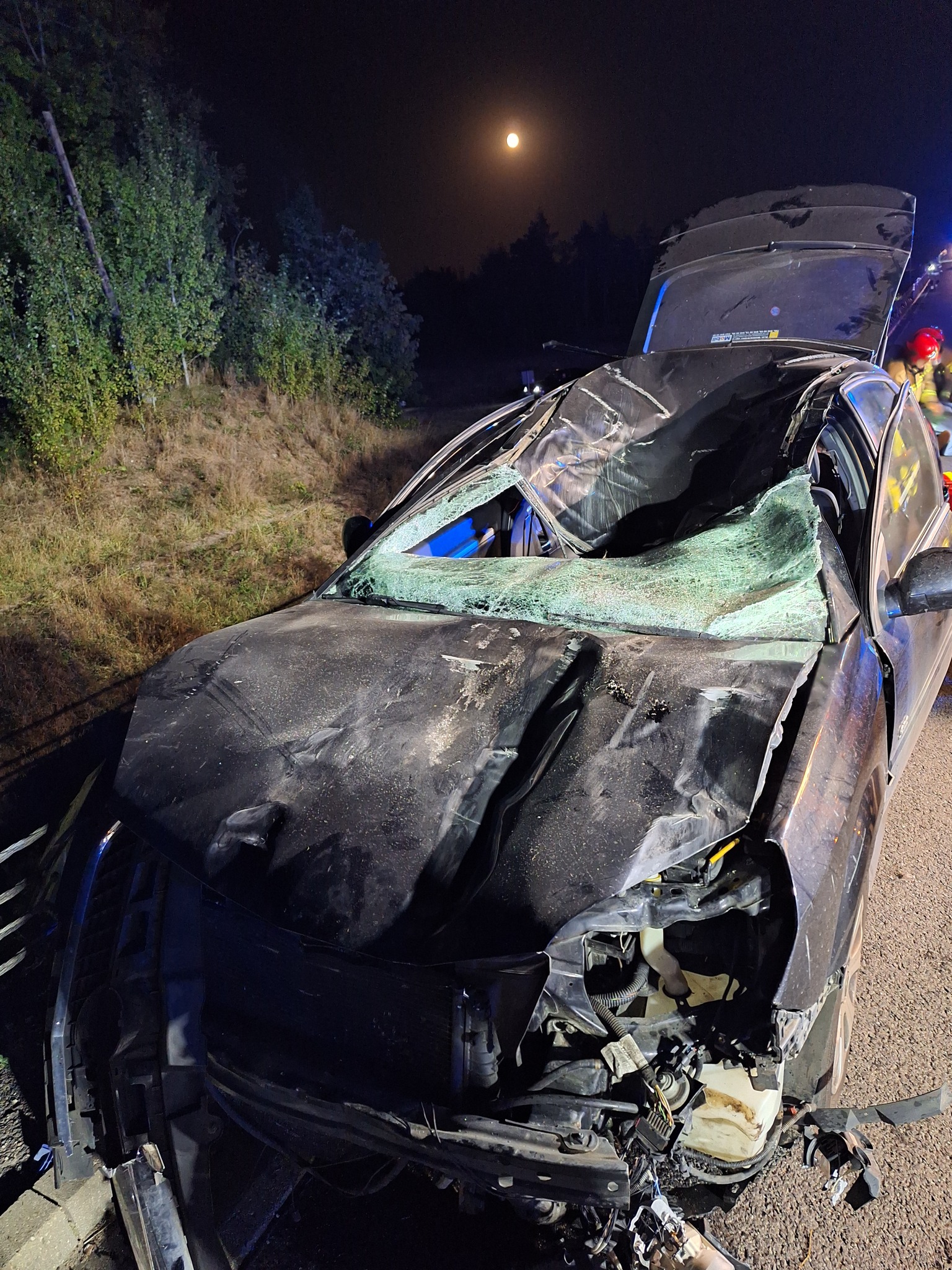 Samochód osobowy uderzył w łosia na DK-16 w miejscowości Parleza Wielka, gm. Biskupiec.