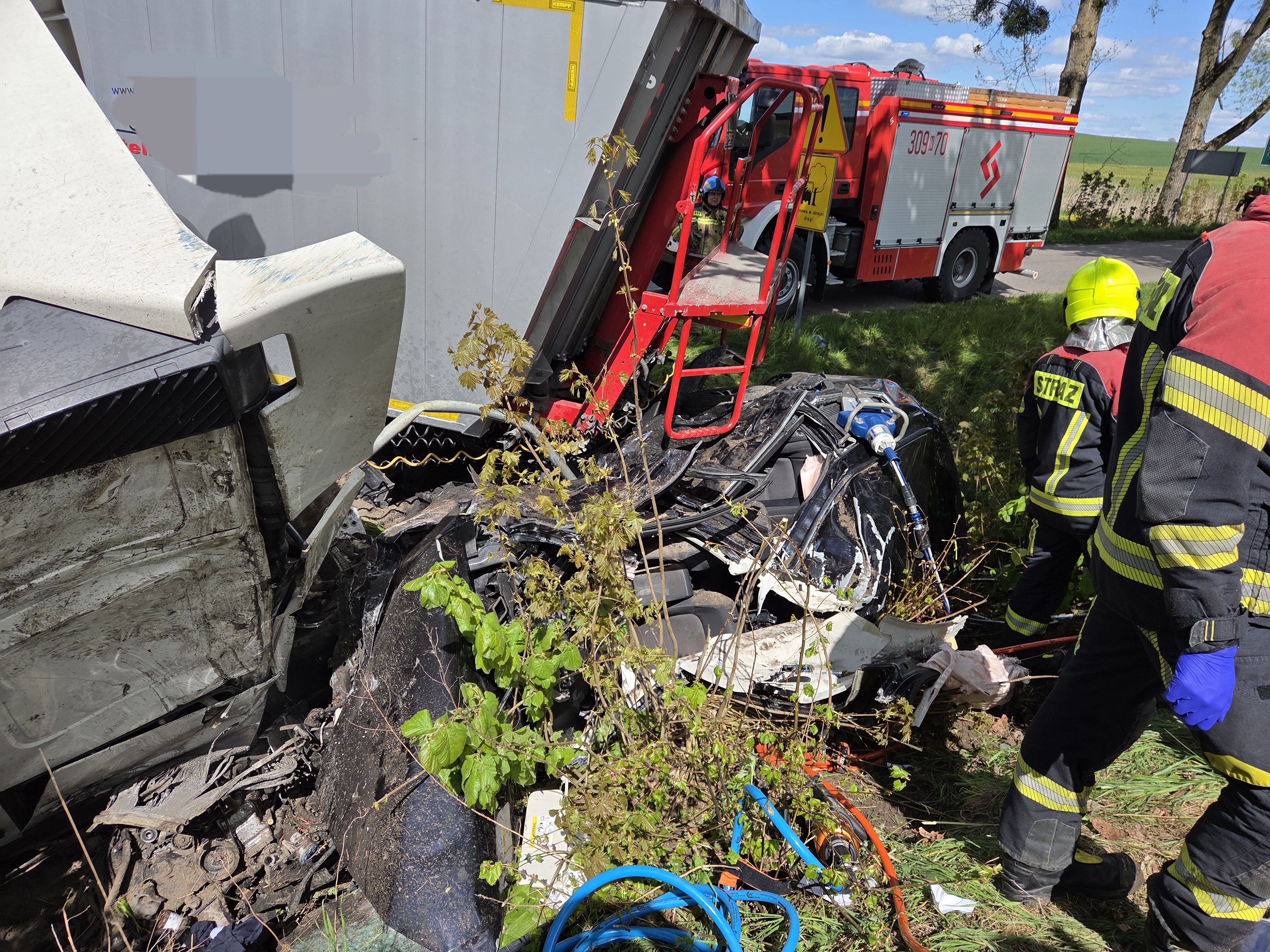 W dniu 05 maja 2025 roku o godz. 13:24 do SK KM PSP w Olsztynie wpłynęła informacja o wypadku samochodu ciężarowego z osobowym na DW593 na odcinku między Łęgnem, a Wilczkowem. W wyniku zdarzenia poszkodowane są dwie osoby, które wymagają pomocy medycznej oraz niezbędne jest wykonanie dostępu do jednej z nich przy użyciu narzędzi hydraulicznych. Po wykonaniu medycznych czynności ratowniczych, lekarz stwierdził zgon ewakuowanego mężczyzny. W działaniach udział brało 7 zastępów straży pożarnej, w tym Zastępca Komendanta Miejskiego PSP w Olsztynie st. bryg. Sergiusz Dłuski, Policja, Lotnicze Pogotowie Ratunkowe i Zespoły Ratownictwa Medycznego.