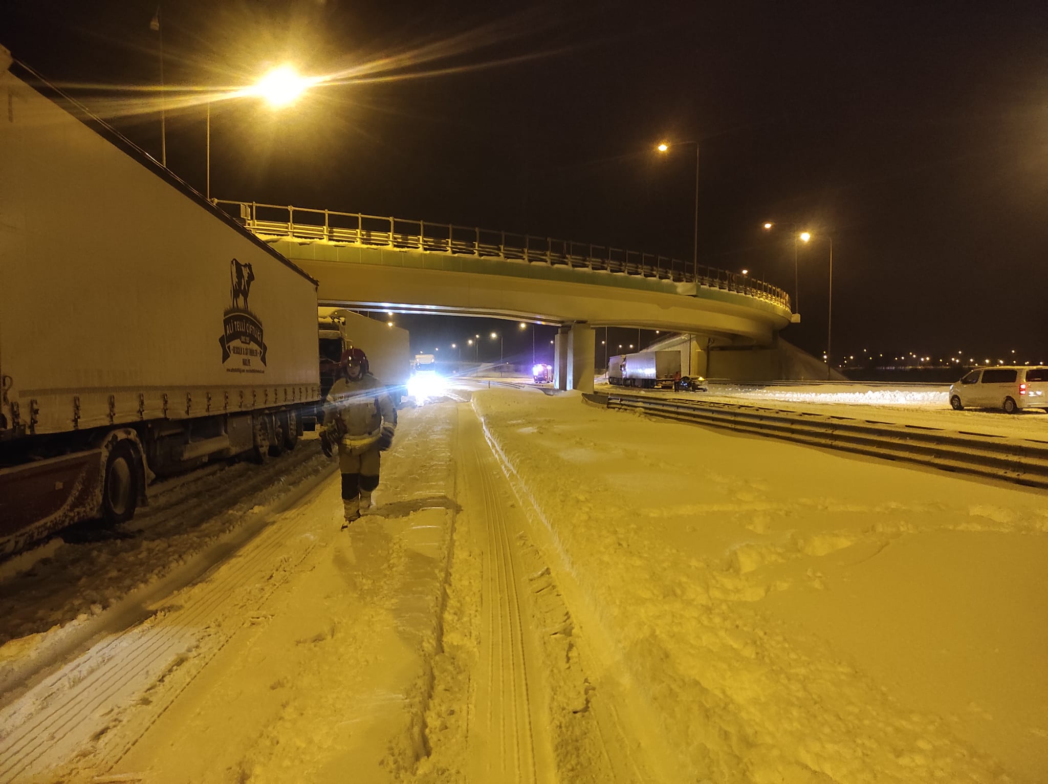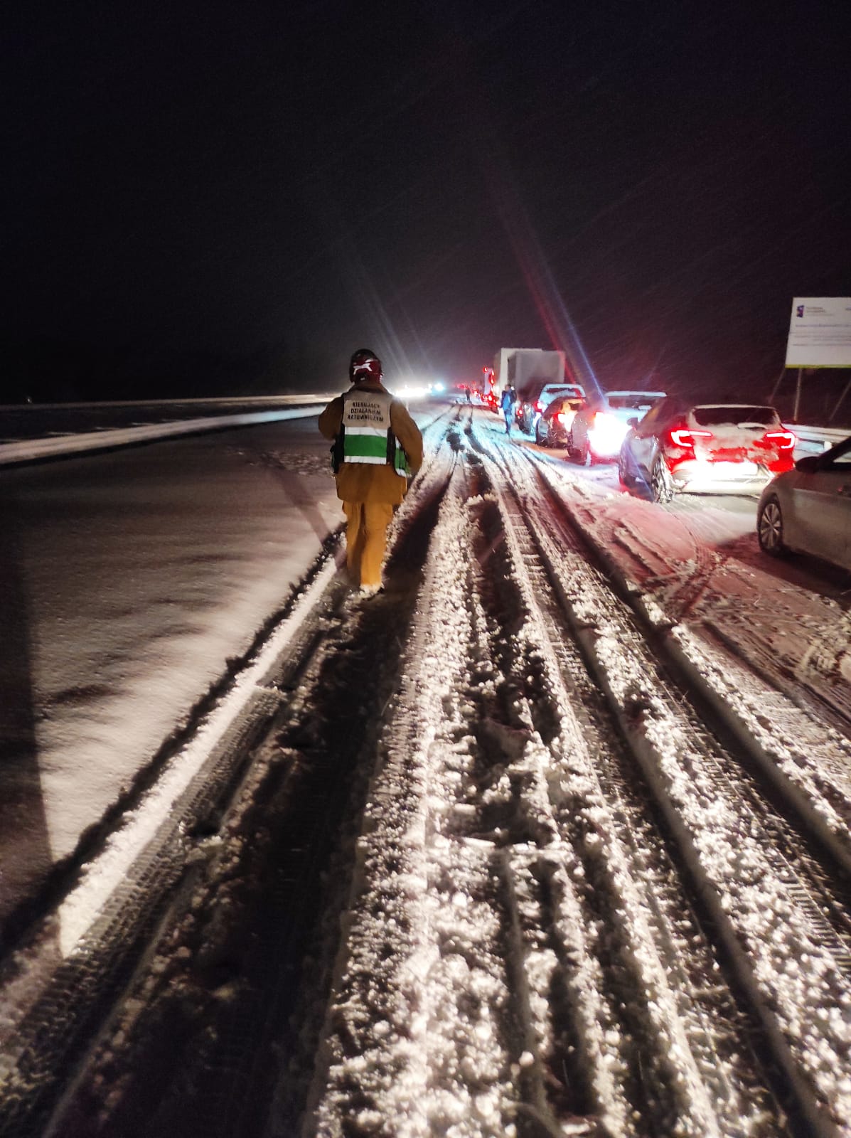 W dniu 30 grudnia o godz. 19:17 do Stanowiska Kierowania Komendanta Miejskiego PSP w Olsztynie wpłynęła informacja zaśnieżonej i oblodzonej drodze ekspresowej. Poniżej krótki opis i fotorelacja z działań funkcjonariuszy KM PSP w Olsztynie podczas miejscowego zagrożenia na S7 polegającego na silnym zaśnieżeniu drogi na skutek którego powstał korek o długości około 10 kilometrów. Warto dodać, że obszar zdarzenia obijał tereny powiatów olsztyńskiego i ostródzkiego