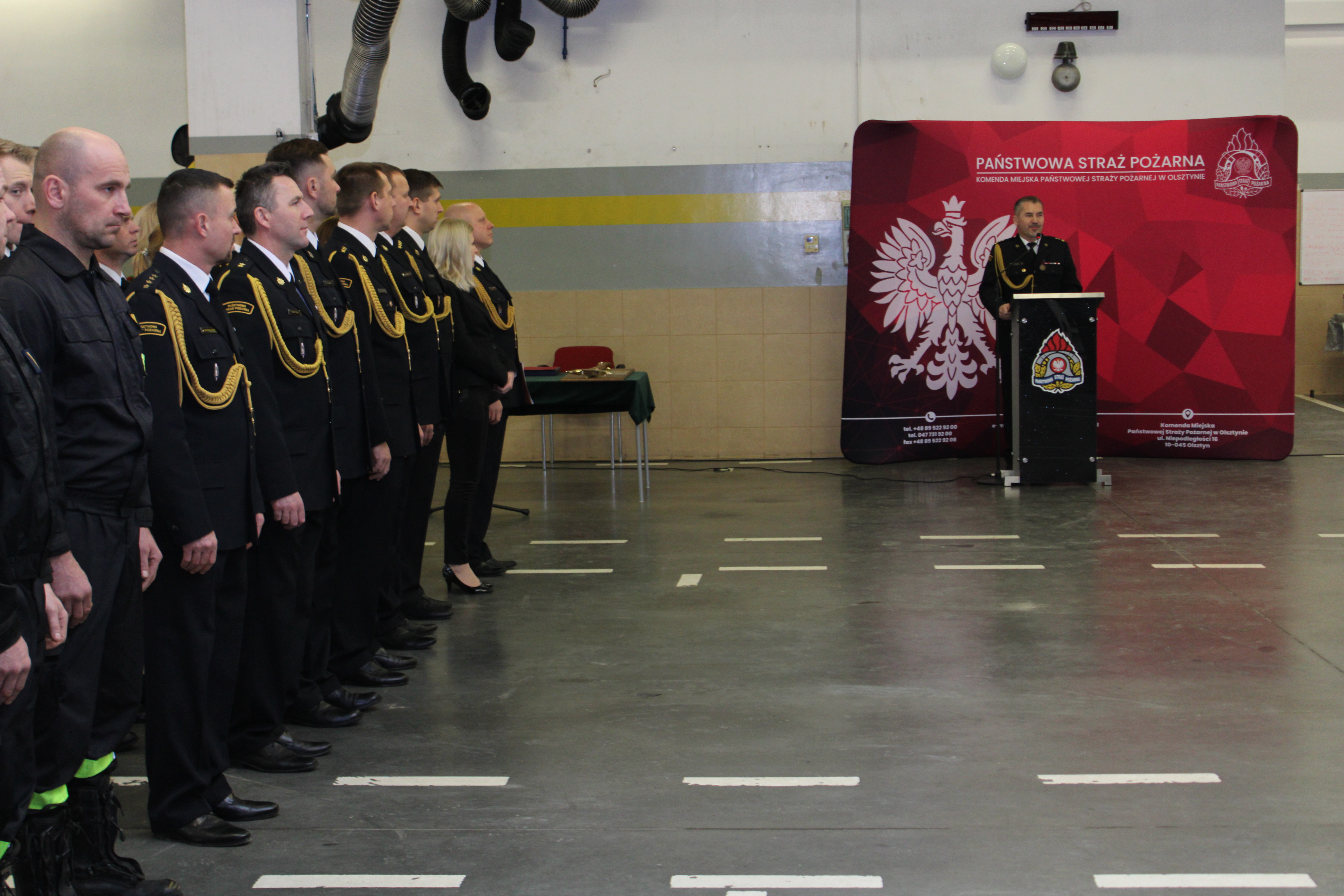 W uroczystości wziął udział p.o. Warmińsko-Mazurskiego Komendanta Wojewódzkiego PSP st. bryg. Tomasz Ostrowski, były zastępca Warmińsko-Mazurskiego Komendanta Wojewódzkiego PSP st. bryg. w stan. spocz. Adam Jastrzębski, Komendant Miejski PSP w Olsztynie bryg. Łukasz Jasiński wraz z zastępcą st. bryg. Sergiuszem Dłuskim, Komendant Miejski PSP w Elblągu st. bryg. Jarosław Gryciuk, funkcjonariusze i pracownicy cywilni Komendy Miejskiej oraz Wojewódzkiej PSP w Olsztynie, a także najbliższa rodzina odchodzącego na zaopatrzenie emerytalne bryg. Marka Grykina.
