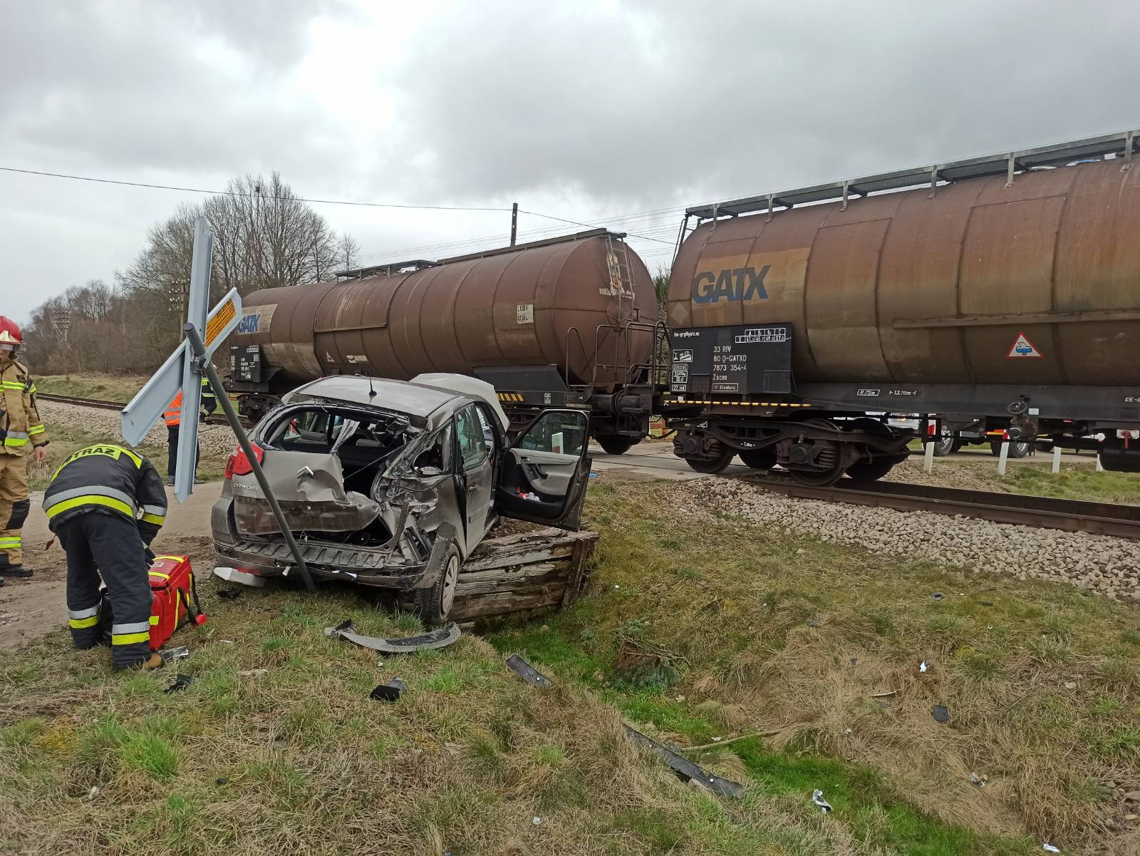 Zderzenie samochodu osobowego z pociągiem na przejeździe kolejowym 27.03.2023