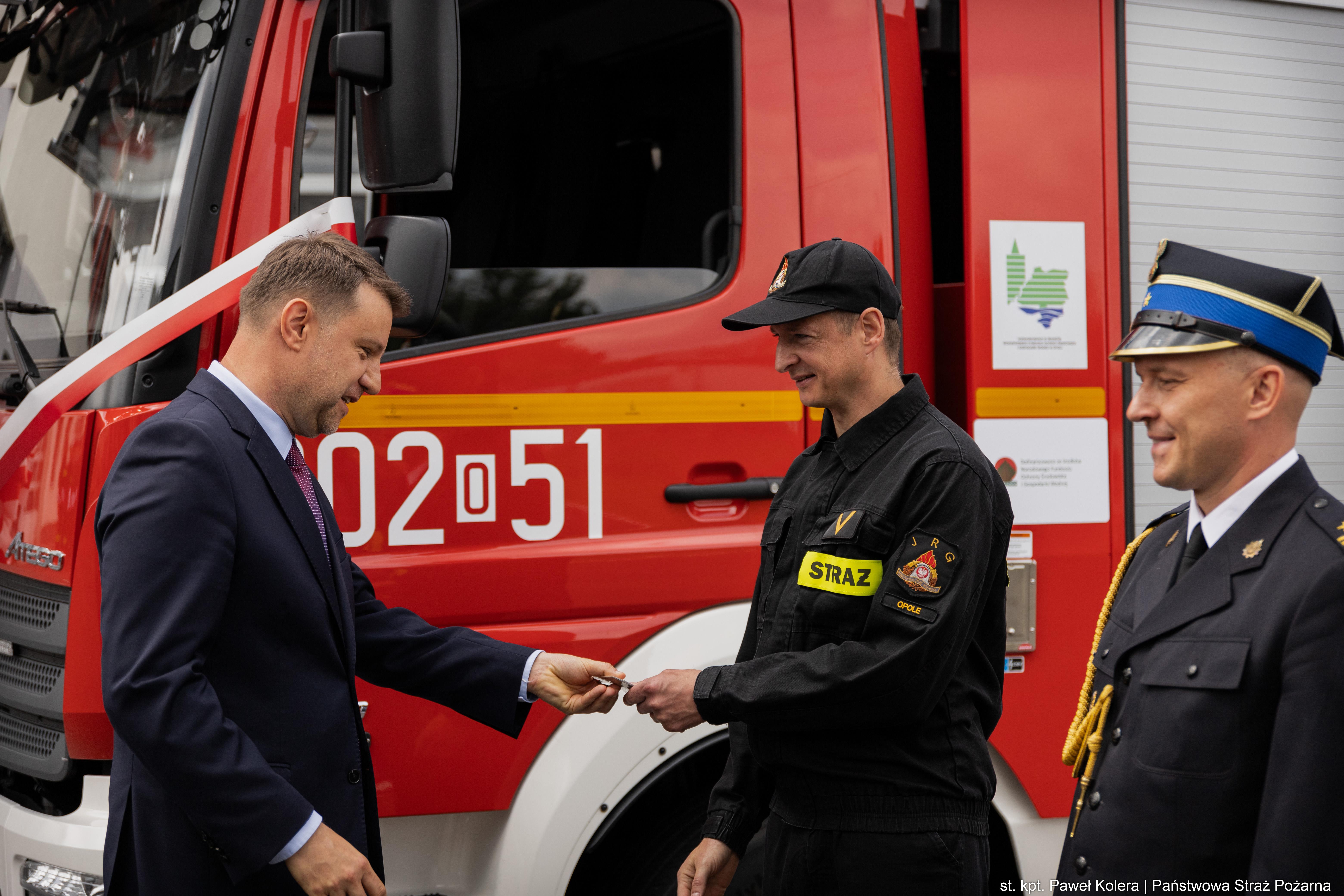 W dalszej części obchodów nastąpiło uroczyste przekazanie Jednostce Ratowniczo Gaśniczej nr 2 z siedzibą w Opolu samochodu ratowniczego z drabiną mechaniczną wraz z wyposażeniem.