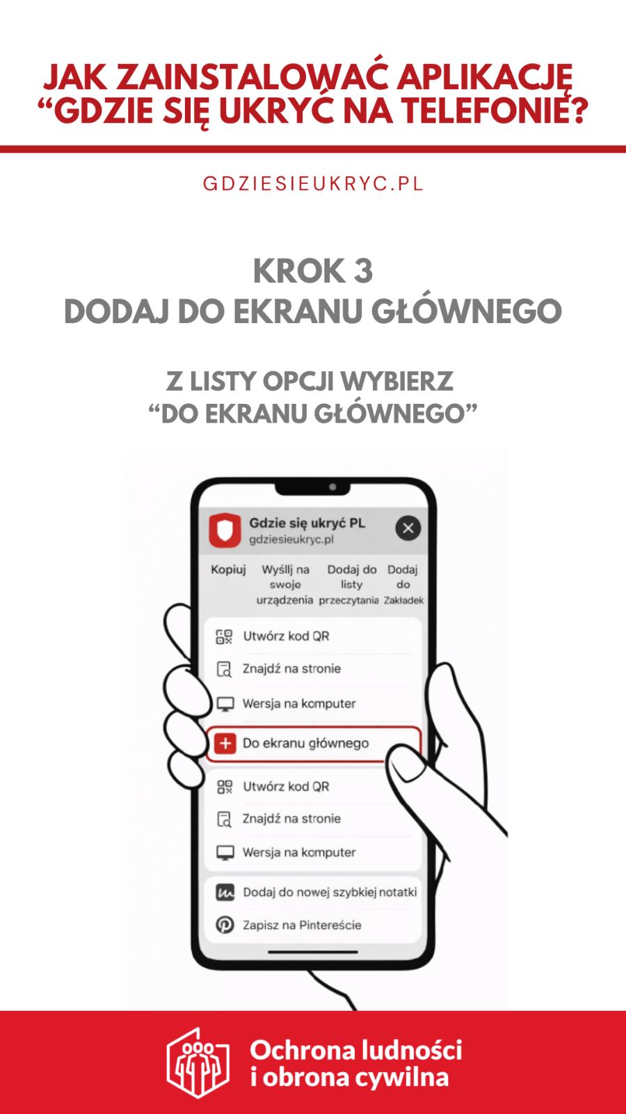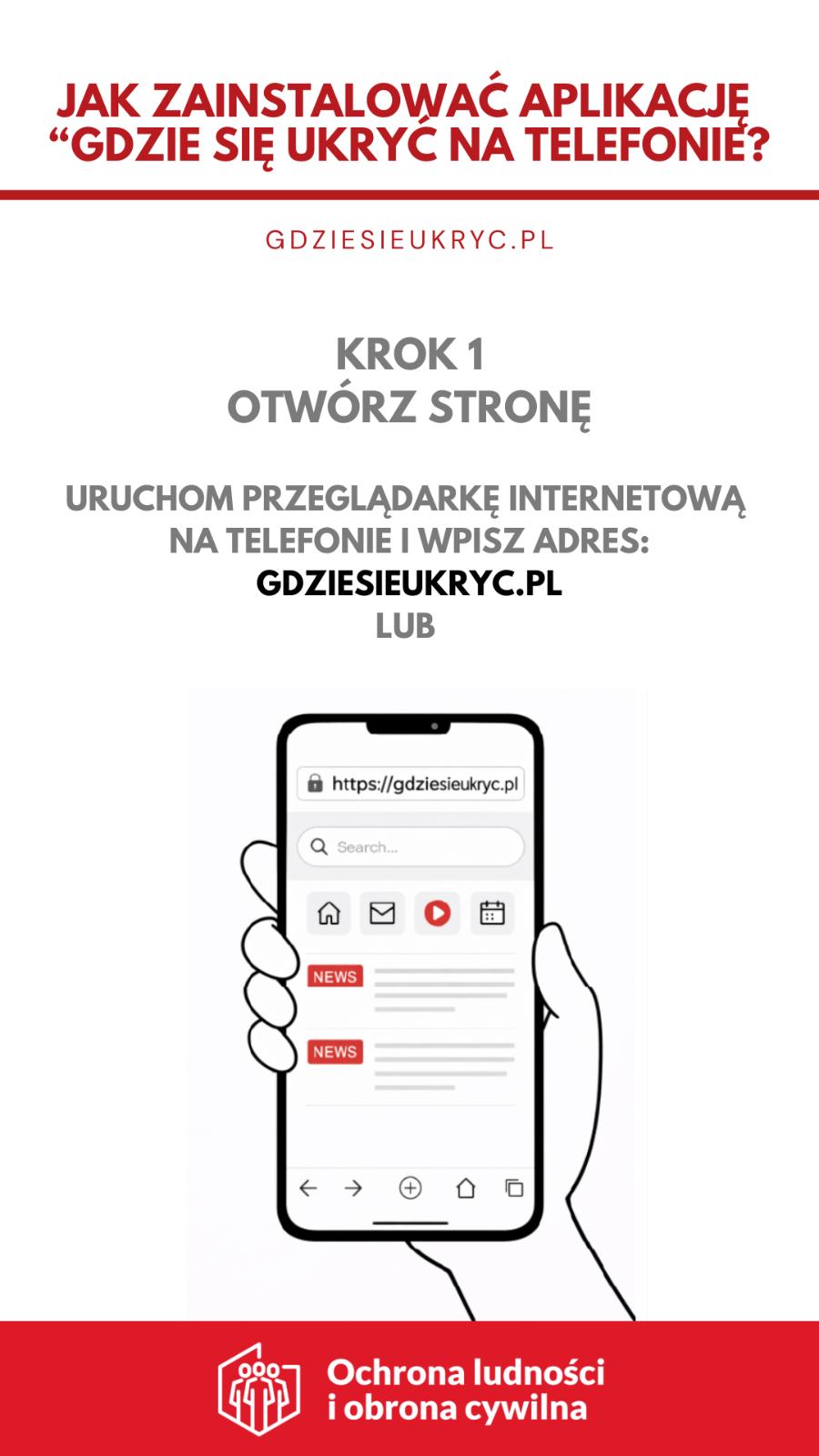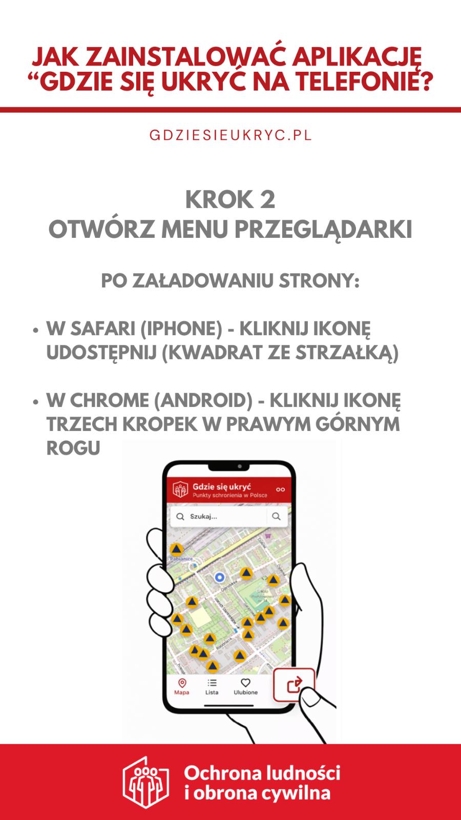 „Gdzie się ukryć” to nowoczesne i przyjazne narzędzie, które może posiadać każdy obywatel. Zostało zaprojektowana z myślą o prostocie i skuteczności: wystarczy telefon komórkowy typu smartfon by w sytuacji nagłego zagrożenia - np. bardzo silnego wiatru czy potencjalnych zagrożenie środkami napadu powietrznego - szybko odnaleźć najbliższe Punkty Schronienia (PS) oraz uruchomić nawigację na mapie. Co ważne, po wcześniejszym pobraniu danych aplikacja działa również w trybie offline.