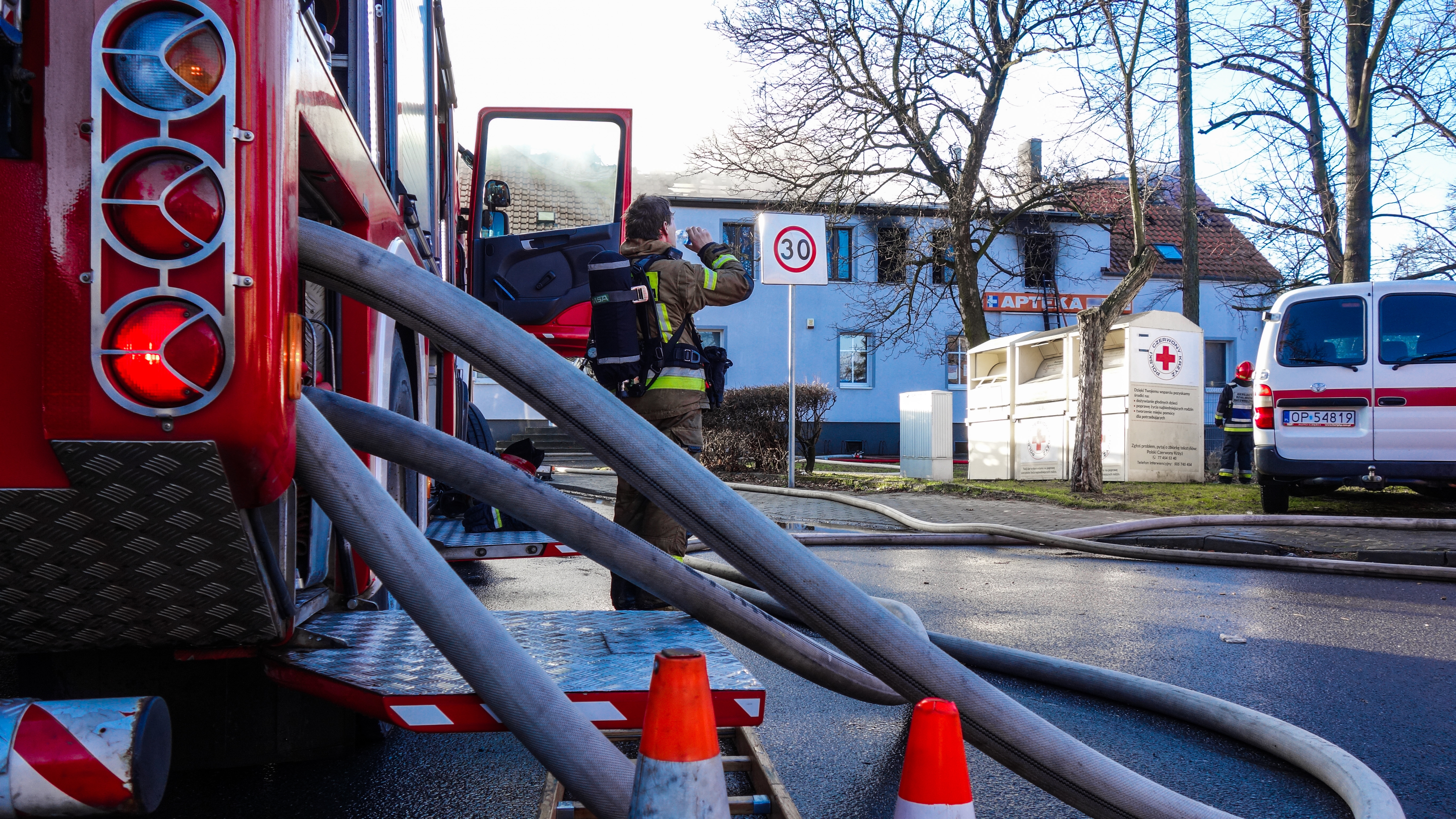 Na szczęście wszyscy mieszkańcy w porę opuścili budynek (trzy osoby dorosłe oraz troje dzieci). W sprawnej ewakuacji pomógł strażak z Jednostki Ratowniczo-Gaśniczej w Krapkowicach – Adam Niesłony, który będąc w czasie wolnym od służby zauważył pożar, zgłosił zdarzenie na numer alarmowy 112 oraz niezwłocznie przystąpił do działania.