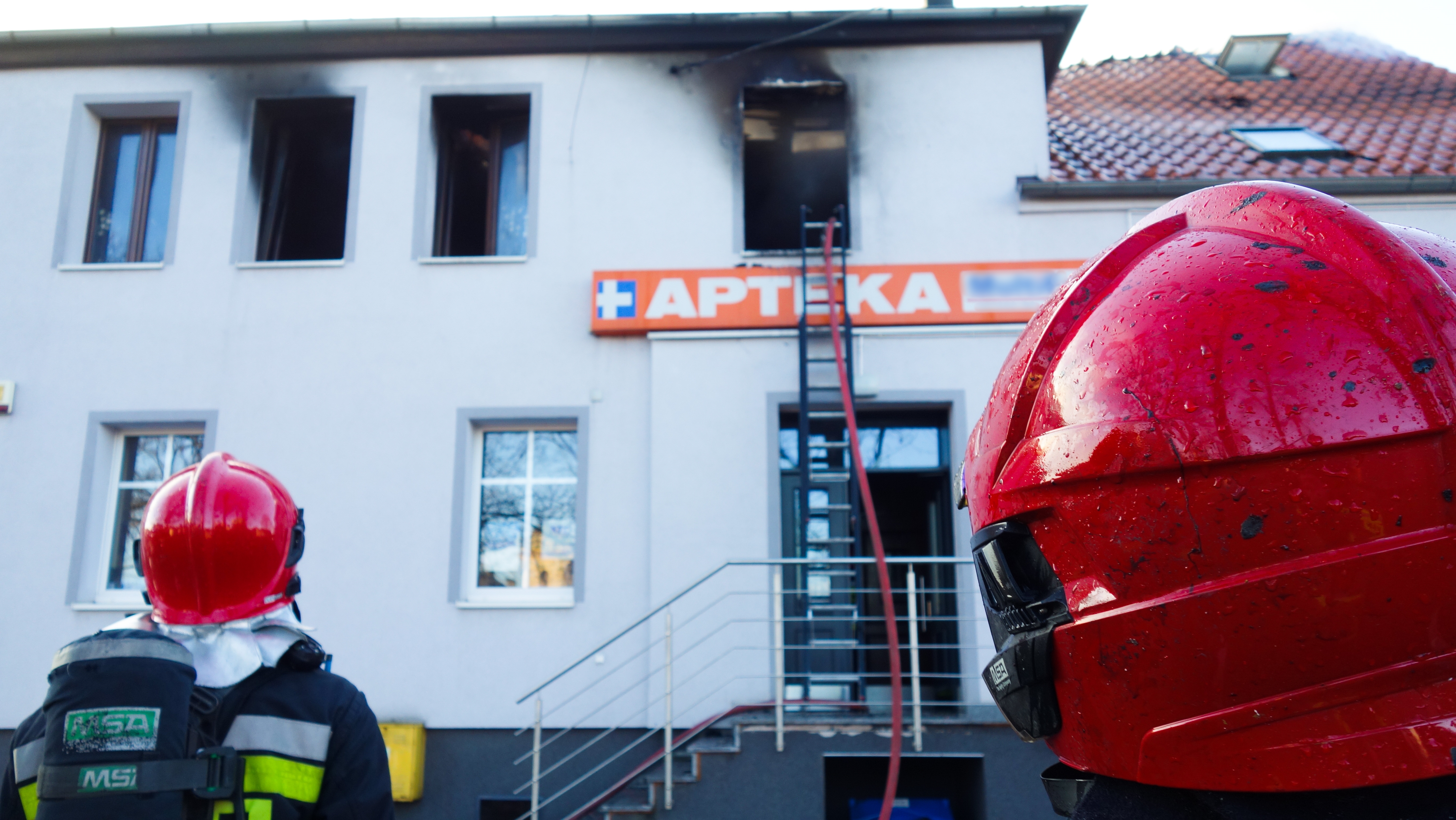 Ratownikom udało się ewakuować z płonącego mieszkania psa, którego przekazano właścicielom, a także znaczną część asortymentu apteki znajdującej się na parterze.