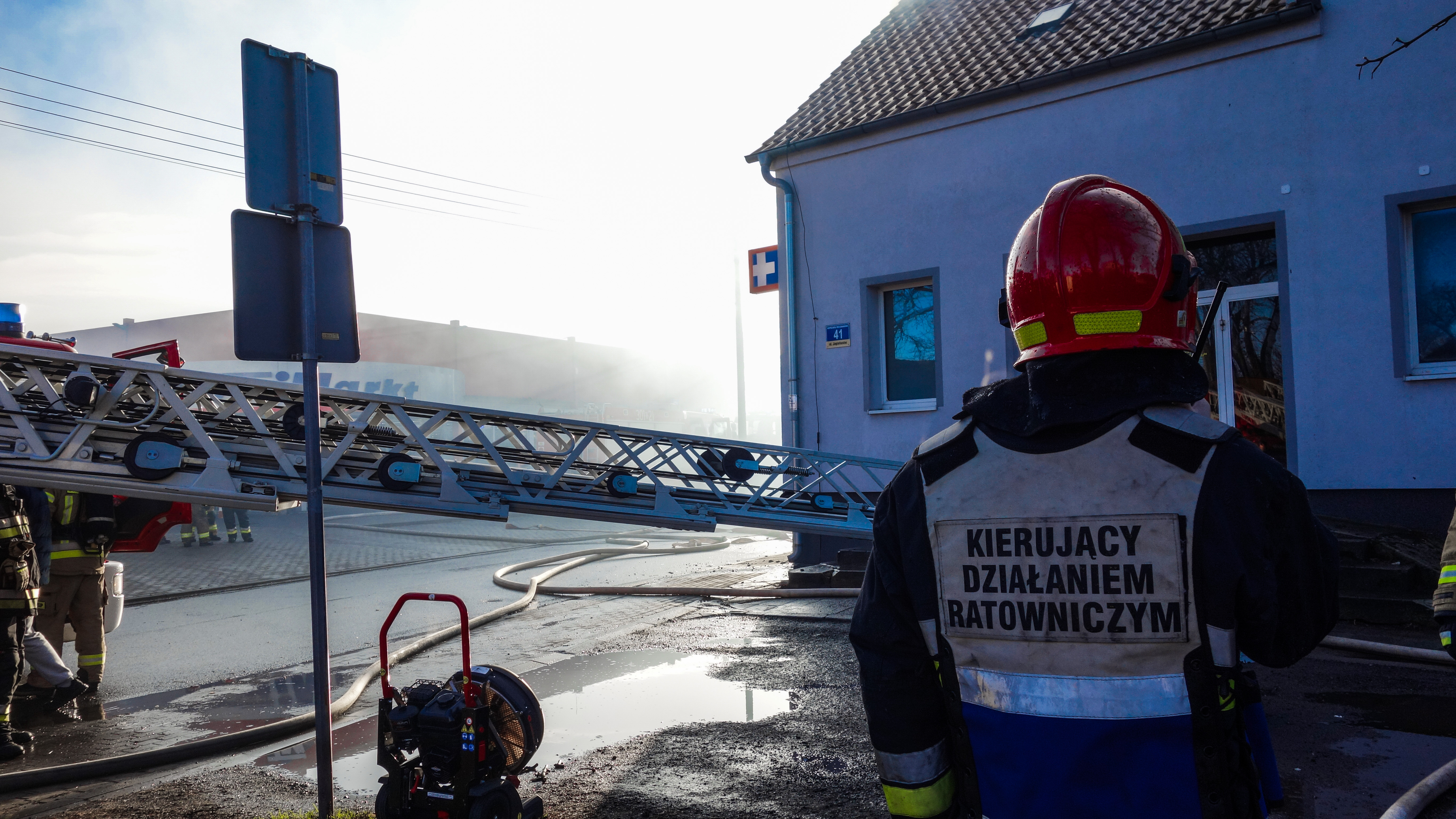 Działania strażaków polegały na podaniu łącznie 5 prądów wody w natarciu i obronie sąsiedniego budynku, w tym jednego przy wykorzystaniu drabiny mechanicznej. Następnie konieczne było przeprowadzenie prac rozbiórkowych w celu dotarcia do ukrytych zarzewi ognia.