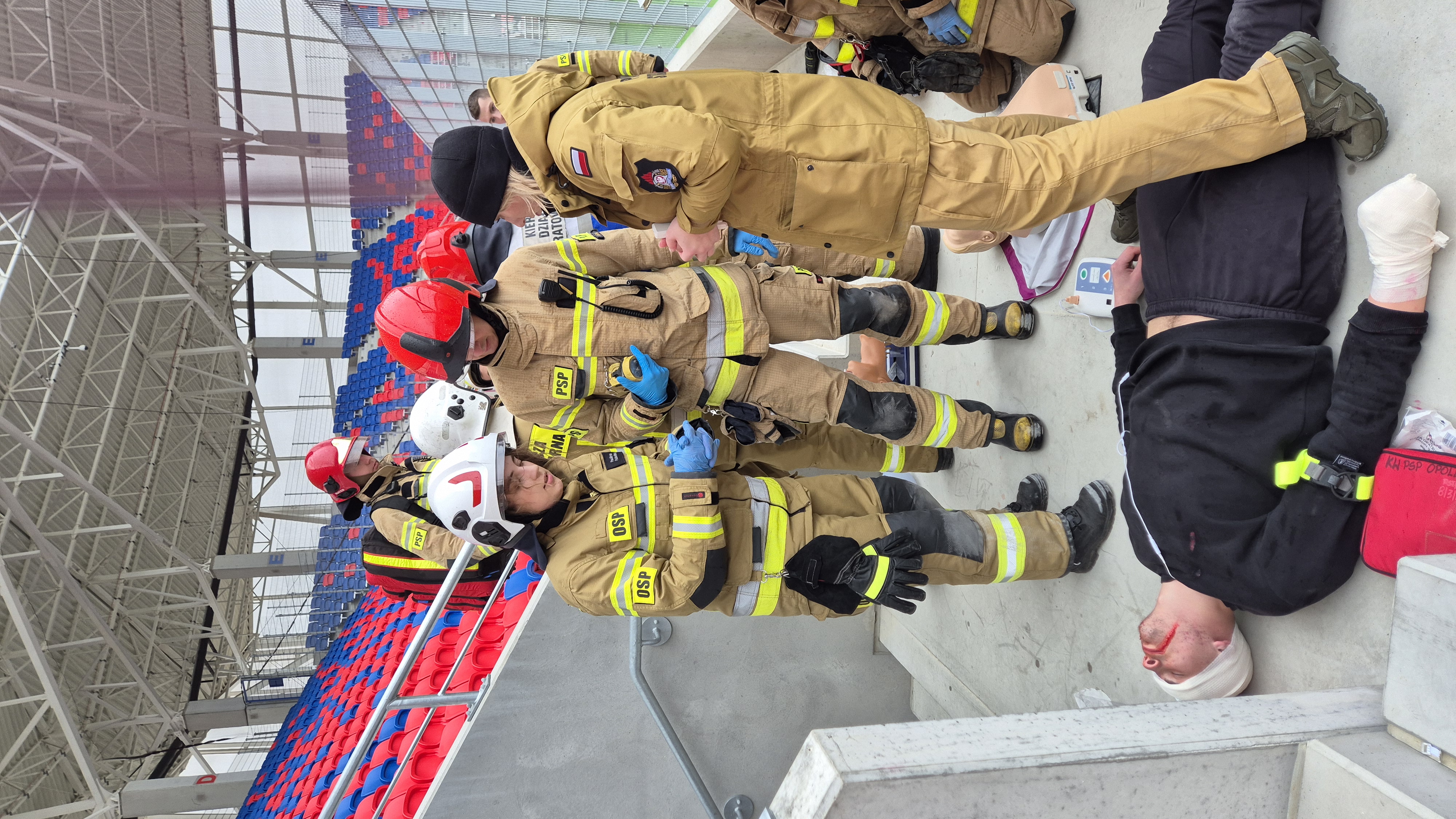 Na nowym Stadionie Miejskim w Opolu przy ulicy Olejnika 1 odbyły się zaawansowane ćwiczenia służb ratunkowych, symulujące sytuację kryzysową podczas imprezy masowej. W wydarzeniu wzięli udział strażacy z Komendy Miejskiej PSP w Opolu, ratownicy oraz inne formacje odpowiedzialne za bezpieczeństwo tego typu obiektów. Współpracy podjęli się także uczniowie klasy strażackiej ze szkoły Pomologia w Prószkowie, którzy jako pozoranci odegrali kluczową rolę w realistycznym odwzorowaniu dynamicznych scenariuszy.