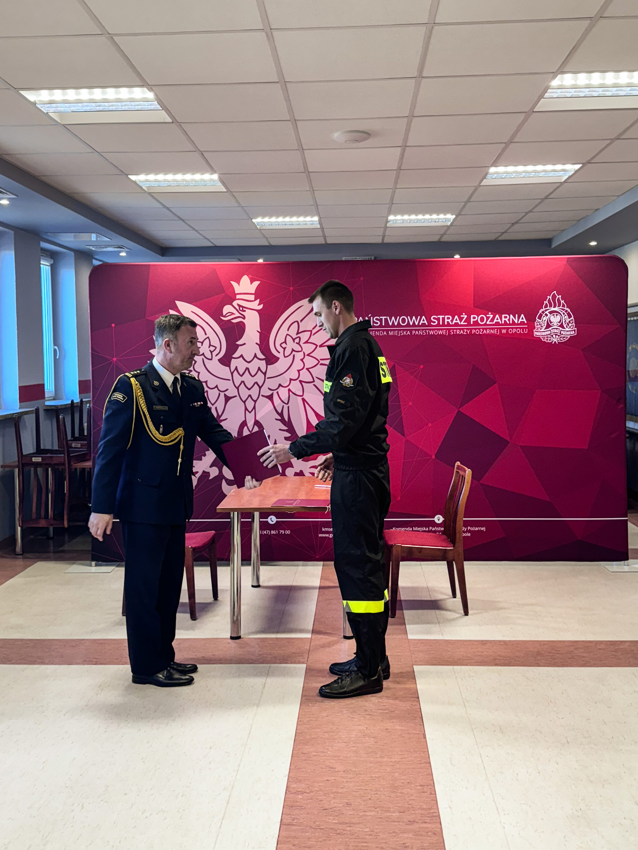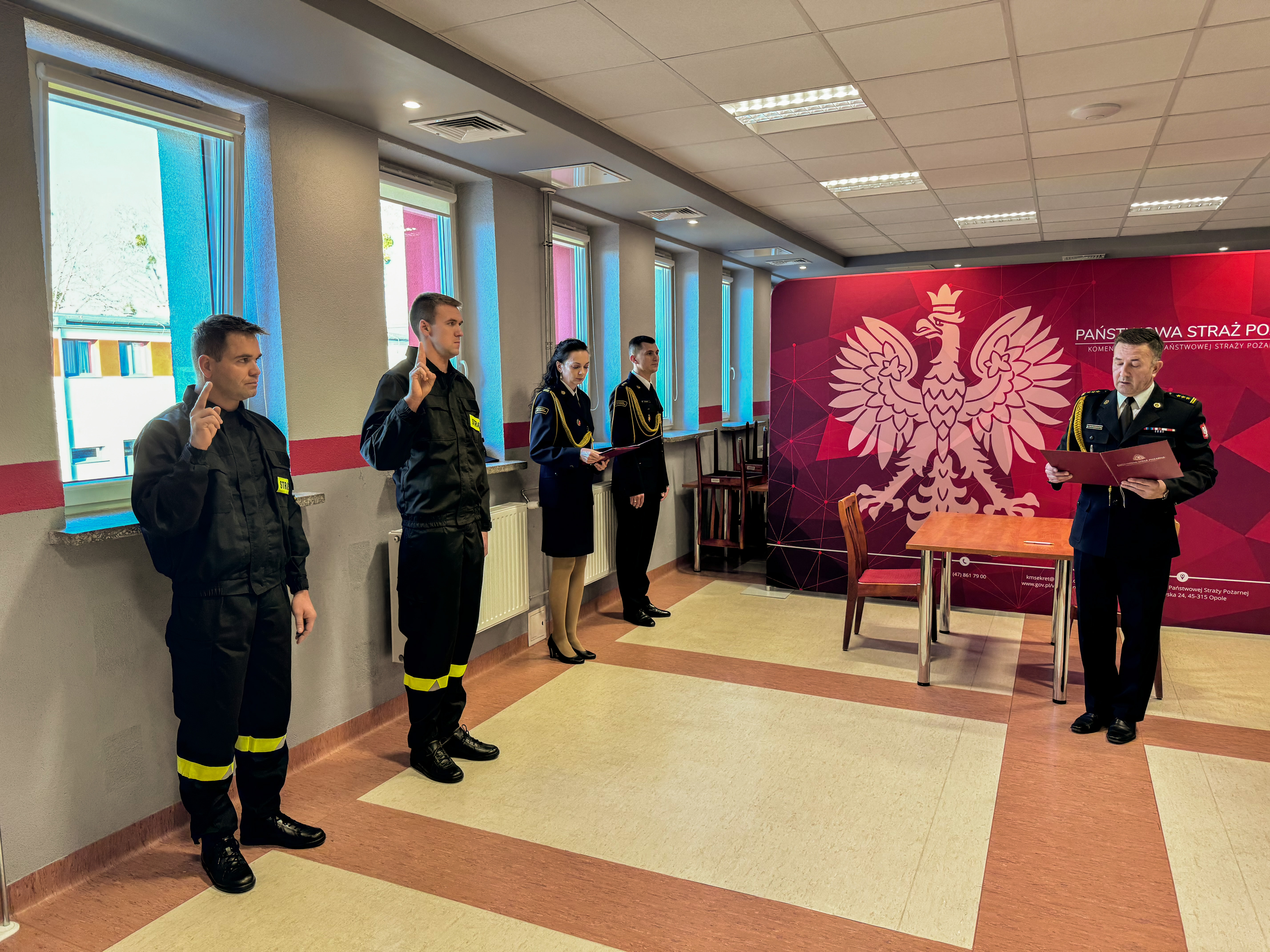 Ślubowanie przyjął Komendant Miejski PSP w Opolu st. bryg. Arkadiusz Margoszczyn w obecności pracowników komendy i sztandaru. Z dniem 1 listopada 2023 roku służbę w Komendzie Miejskiej PSP w Opolu rozpoczęli: