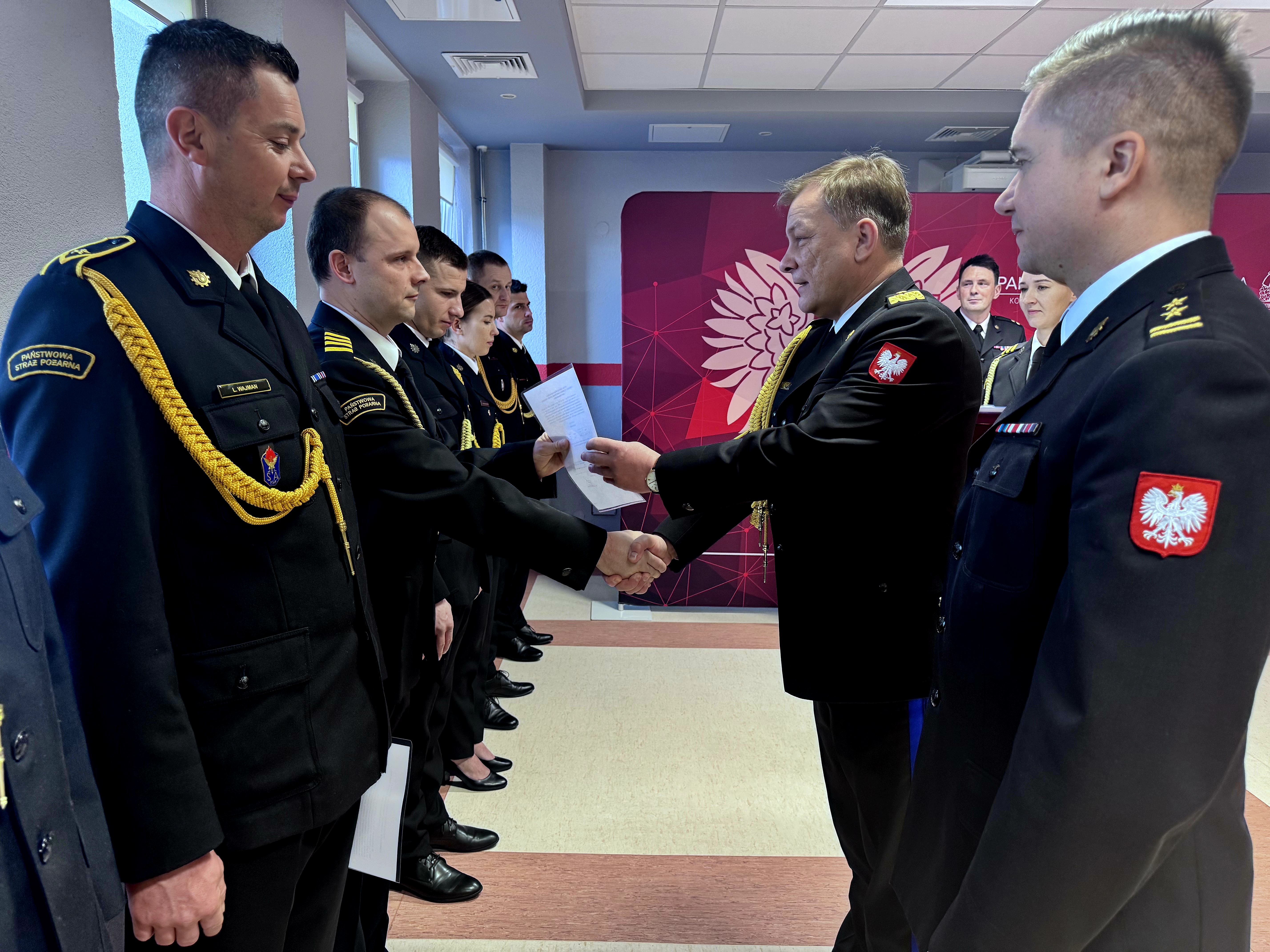 Głównym elementem uroczystości było wręczenie awansów na wyższe stopnie służbowe oraz nagród finansowych dla funkcjonariuszy szczególnie wyróżniających się podczas działań związanych z likwidowaniem skutków powodzi.
