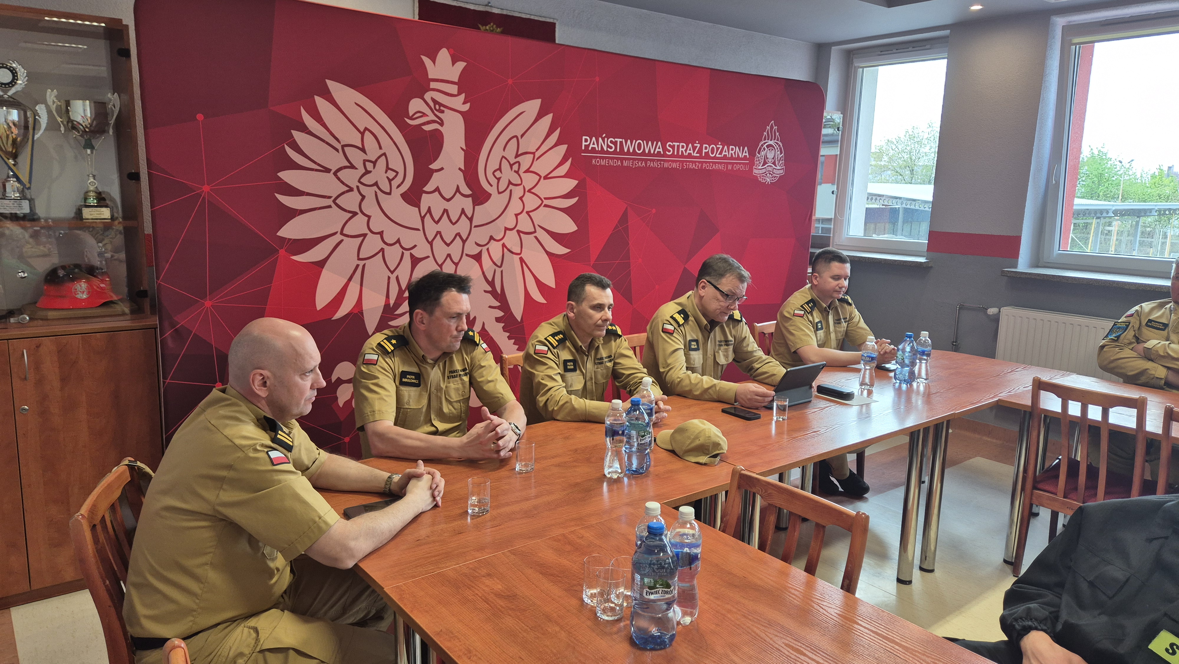 W KM PSP Opole gości powitał Komendant Miejski bryg. Marcin Urban wraz z zastępcami. Spotkanie było okazją do podsumowania najważniejszych zagadnień związanych z działalnością Komendy Miejskiej oraz do omówienia kwestii istotnych z perspektywy całego województwa.