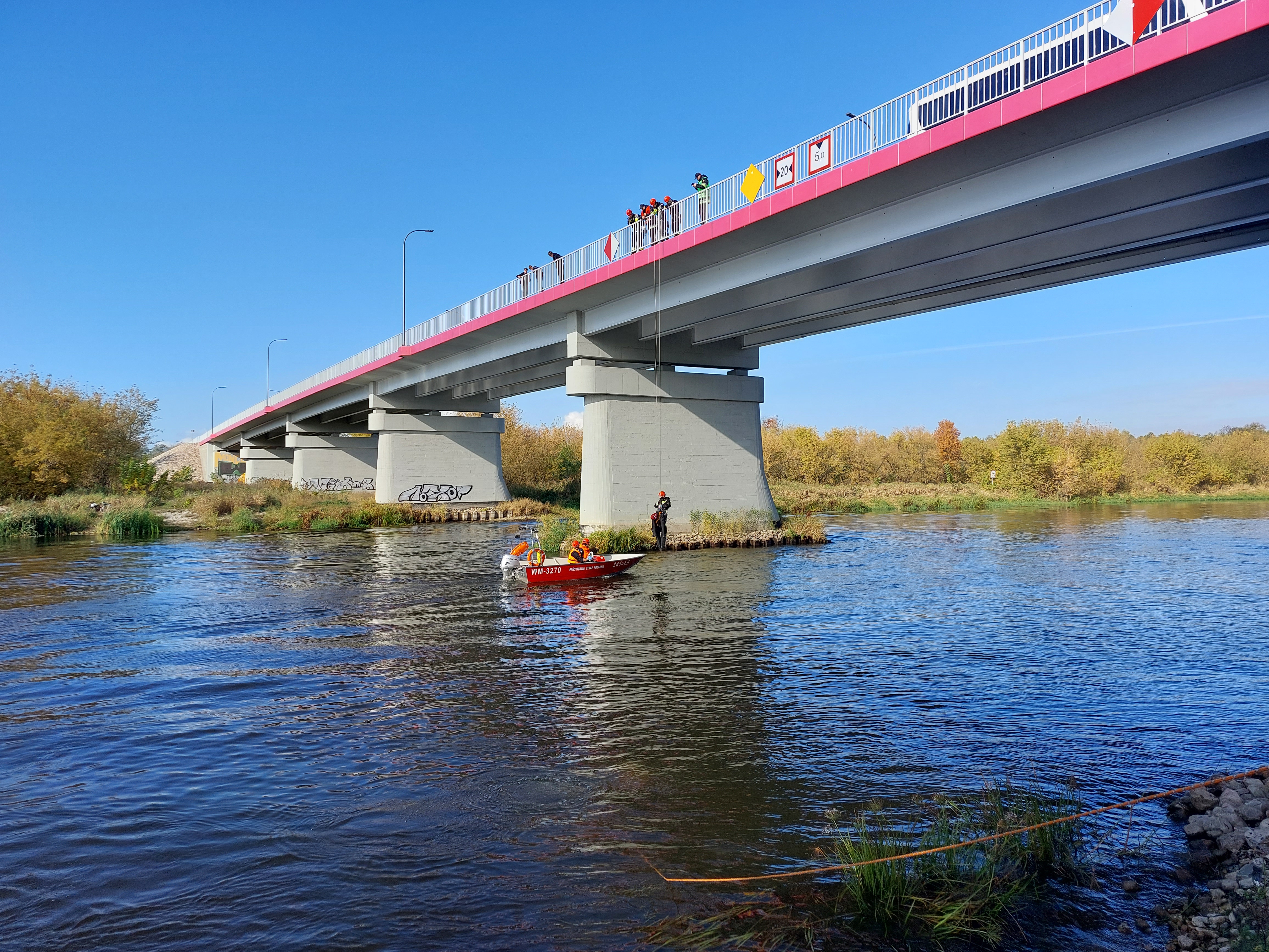 W dniu 13 października br. na moście drogowym im. Kard. Stefana Wyszyńskiego w Ostrołęce przeprowadzone zostały ćwiczenia poszukiwawczo – ratownicze pod kryptonimem „NAREW 2022”.