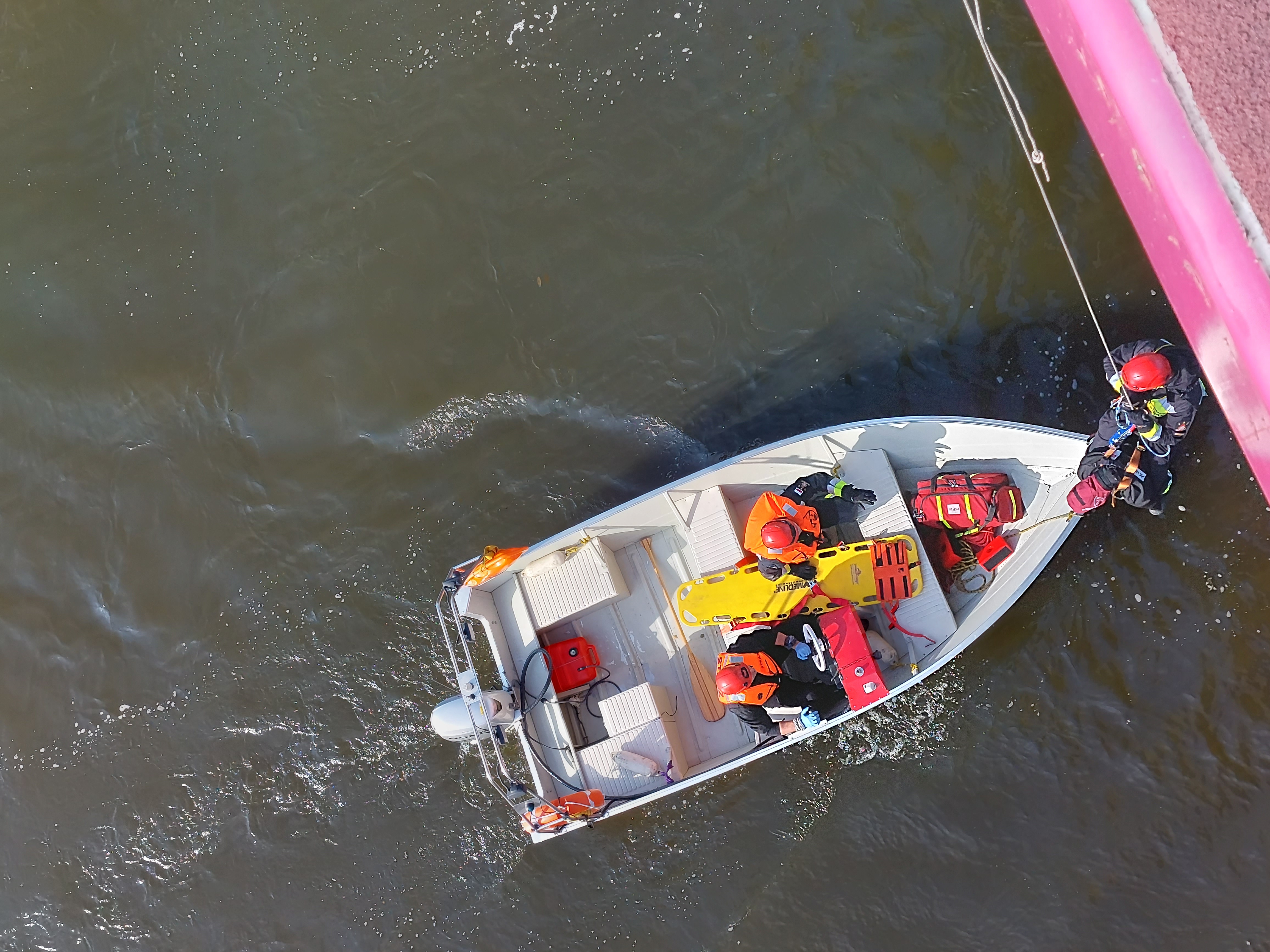 Scenariusz ćwiczeń zakładał porażenie prądem dwóch pracowników wykonujących prace konserwacyjne poniżej poziomu mostu. Jeden z pracowników wpada do rzeki, drugi z pracowników wisi na linie poniżej poziomu jezdni.