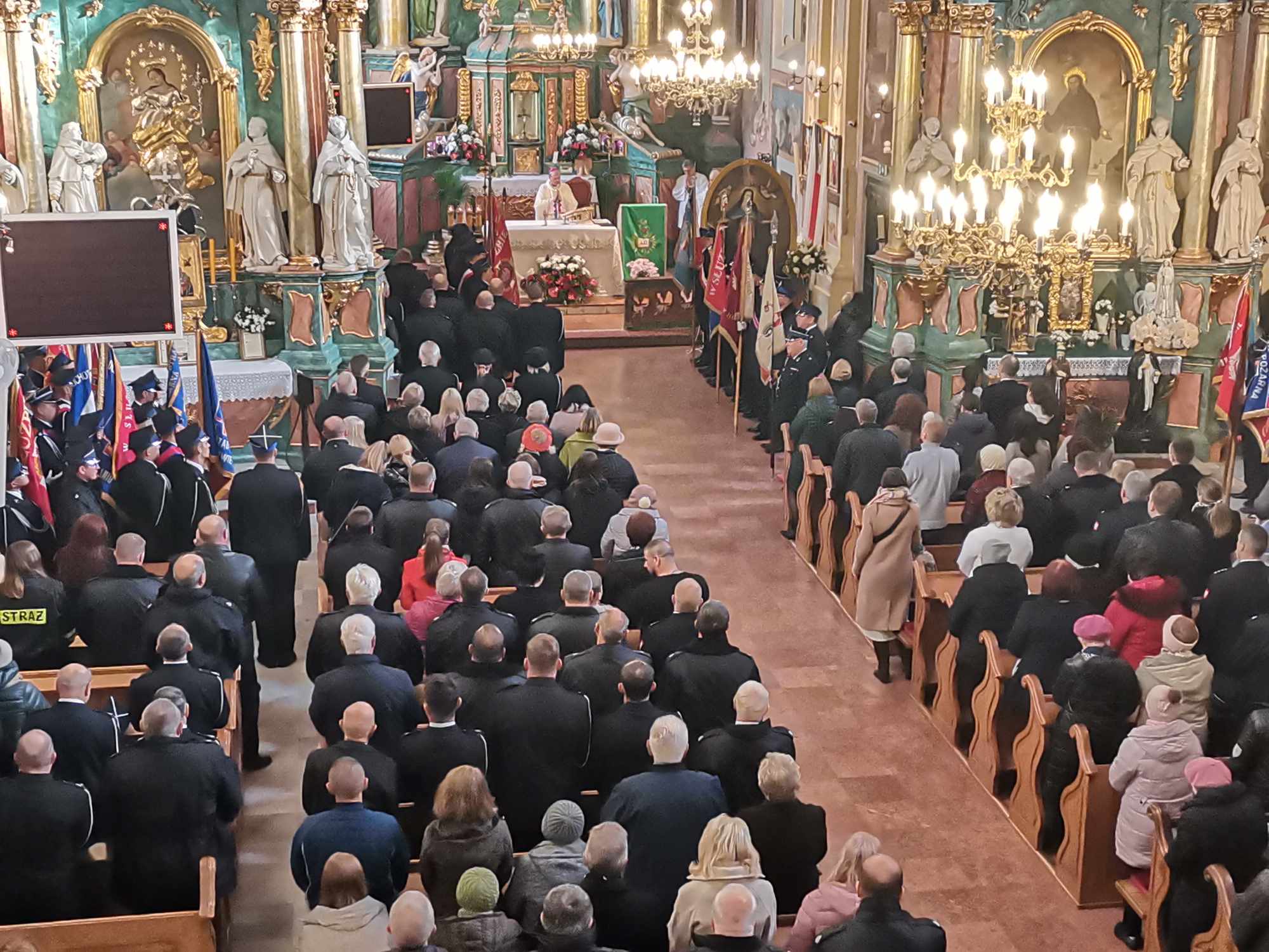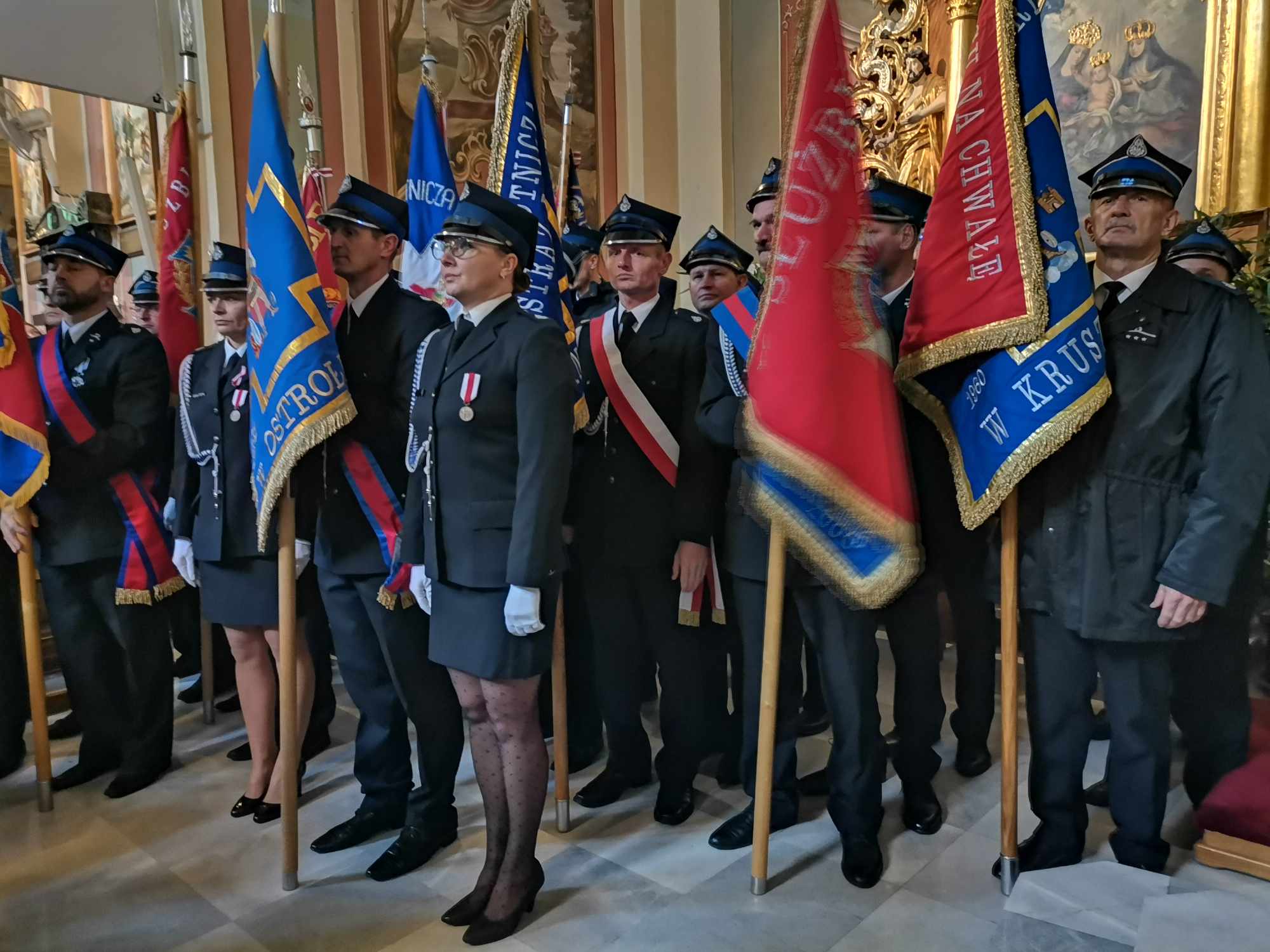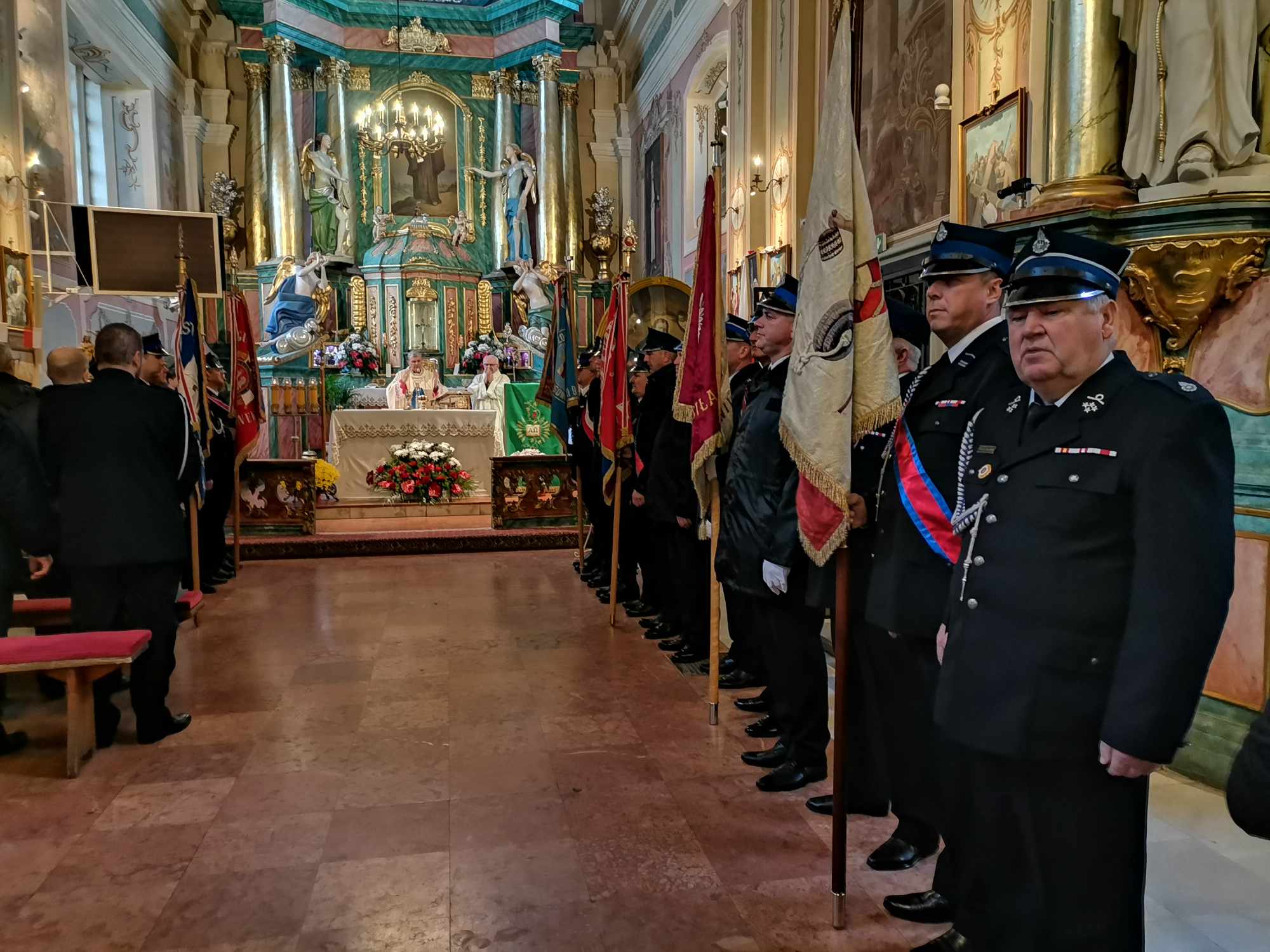 W uroczystej mszy świętej udział wzięło ponad 20 strażackich pocztów sztandarowych oraz ponad 200 druhów z Ochotniczych Straży Pożarnych z całego powiatu ostrołęckiego i strażacy z Komendy Miejskiej Państwowej Straży Pożarnej w Ostrołęce.