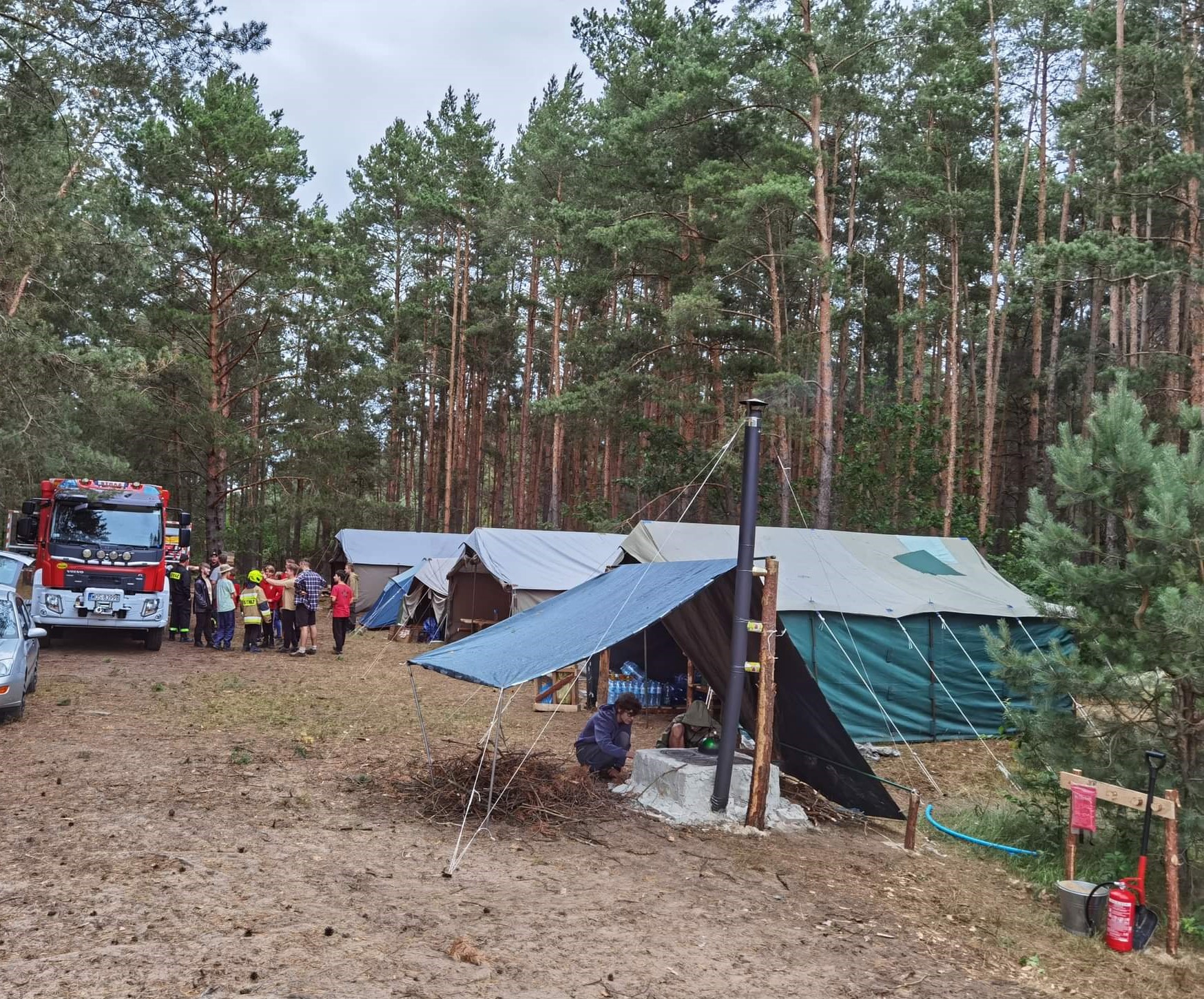 Obóz harcerski - wizyta jednostki OSP połączona z instruktażem