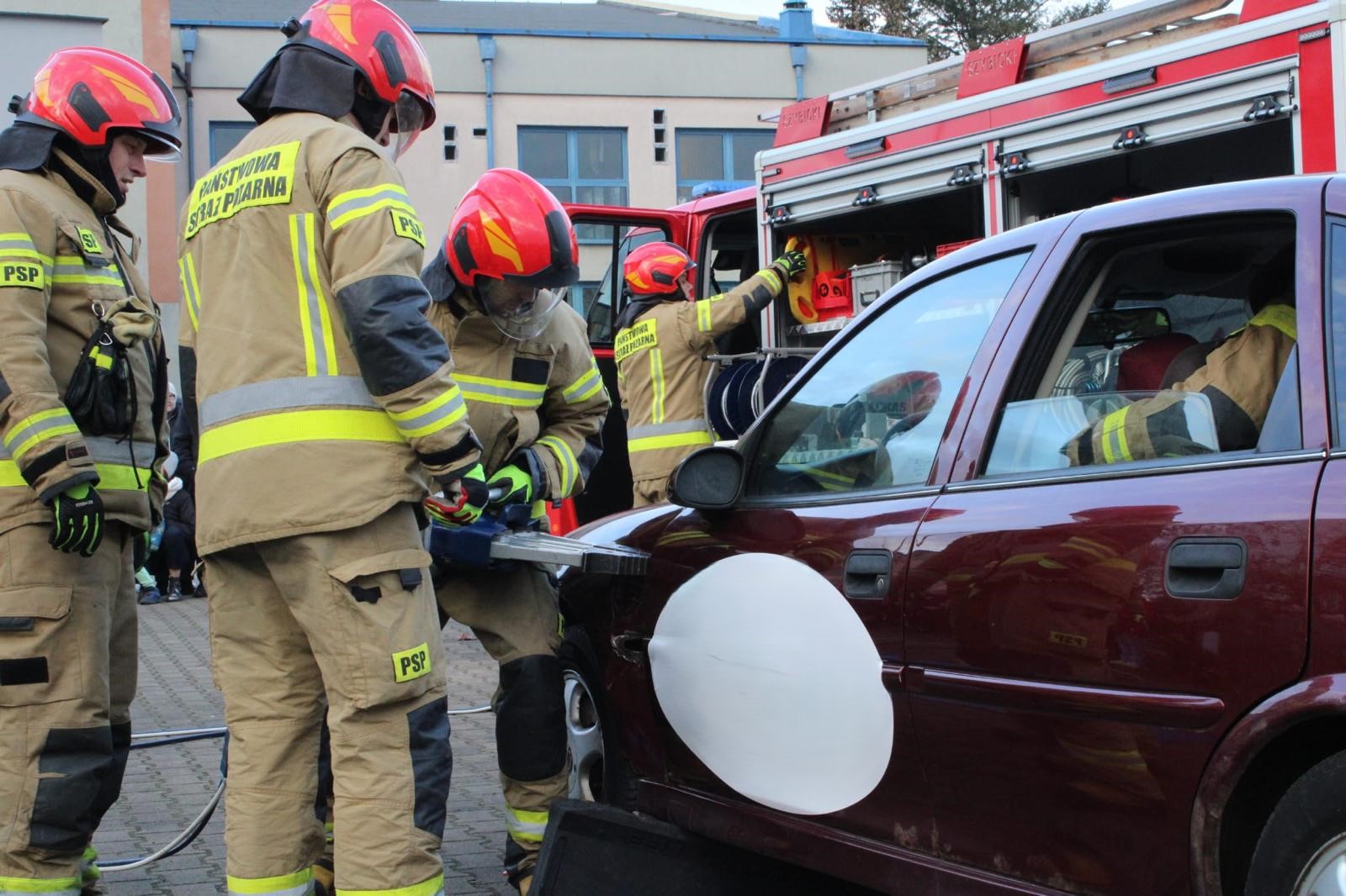 Dodatkowo przeprowadzony został pokaz ratownictwa technicznego, podczas którego strażacy uwalniali osobę poszkodowaną (manekina) uwięzioną w pojeździe, przy pomocy specjalistycznego sprzętu hydraulicznego.