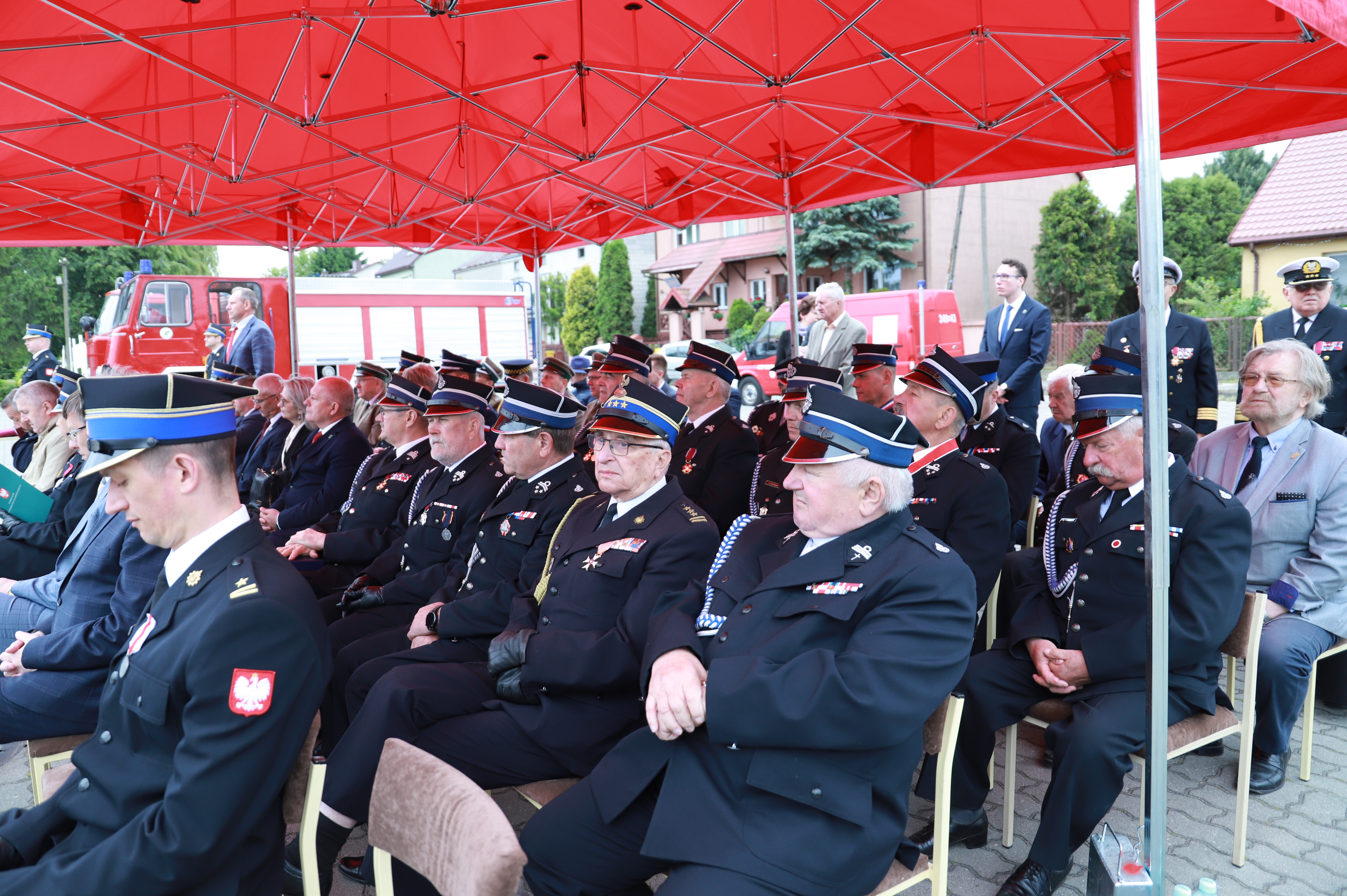 oraz przedstawiciele służb mundurowych, przedstawiciele administracji samorządowej szczebla gminnego, podmioty i instytucje współpracujące z jednostkami ochrony przeciwpożarowej, weterani pożarnictwa, przedstawiciele zarządu oddziału powiatowego, a także oddziałów gminnych ZOSP RP, druhny i druhowie z jednostek OSP powiatu ostrołęckiego.