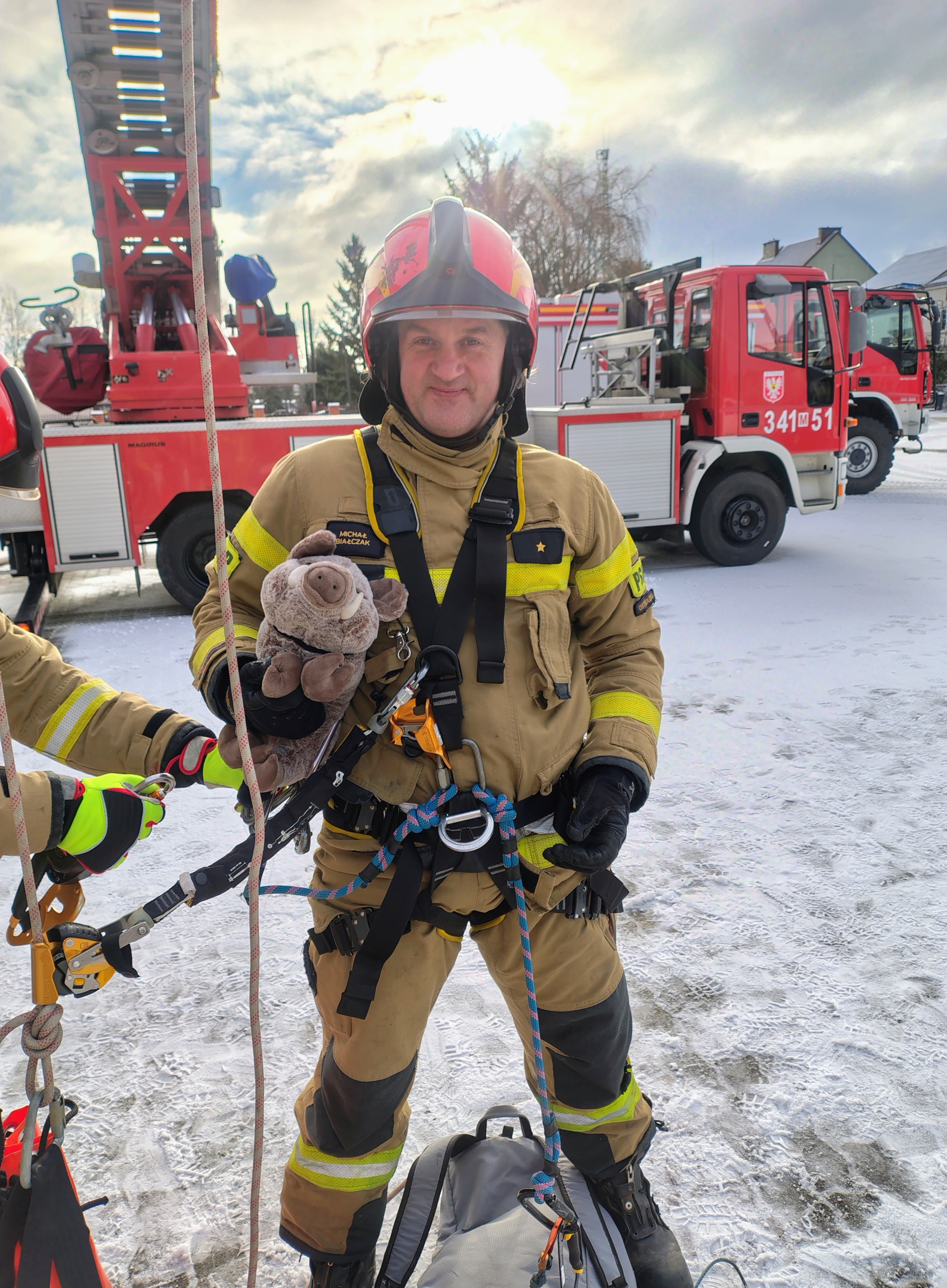 Odchodzący na zaopatrzenie emerytalne asp. Michał Białczak pełnił służbę w Państwowej Straży Pożarnej łącznie przez 21 lat. Swoją przygodę z zawodowym pożarnictwem rozpoczął w 2005 roku w Jednostce Ratowniczo - Gaśniczej w Ostrołęce. Przez cały okres służby związany był z podziałem bojowym. Był członkiem Specjalistycznej Grupy Ratownictwa Chemiczno-Ekologicznego