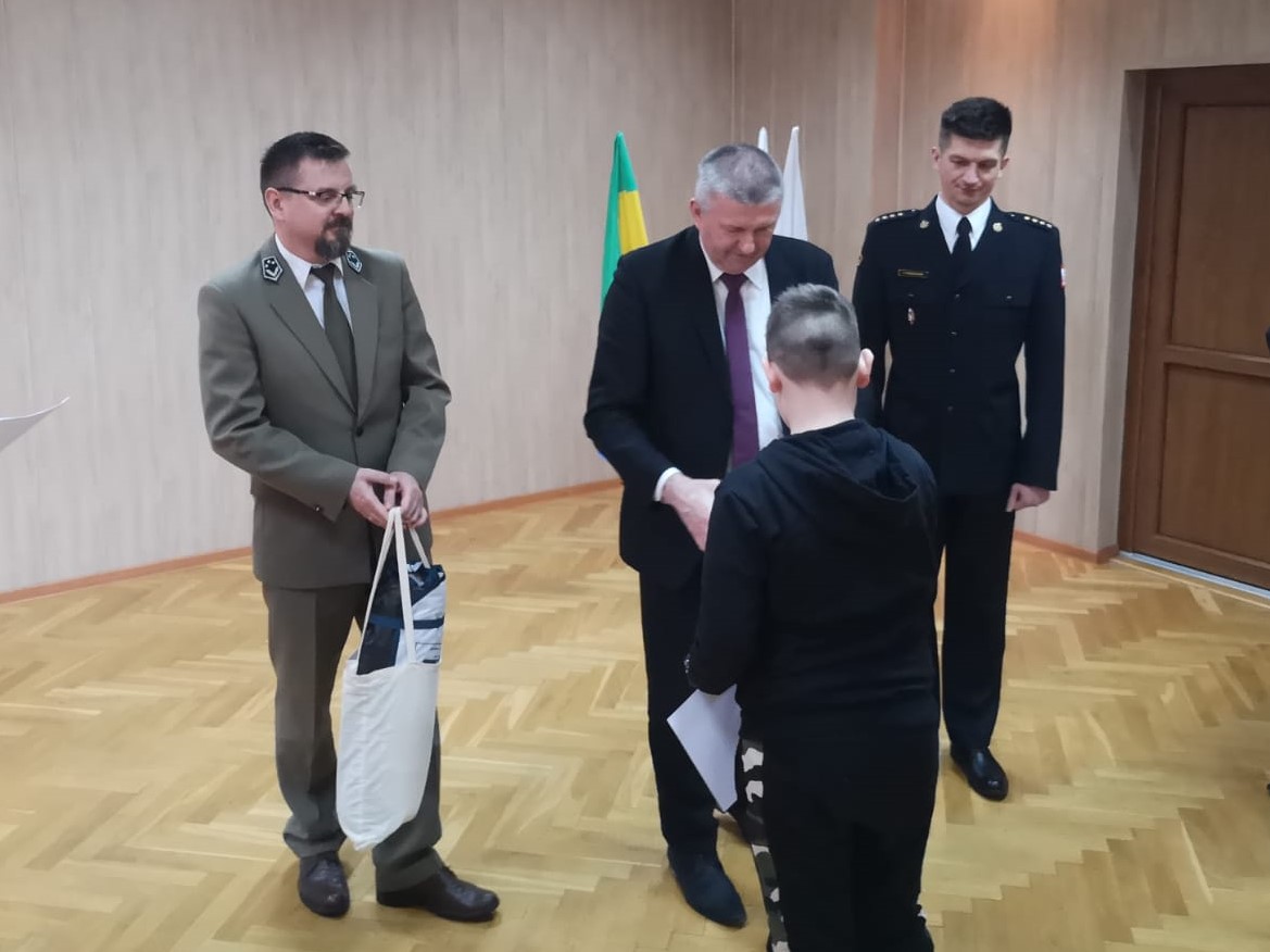 Po zakończeniu turnieju odczytano protokół końcowy oraz wręczono uczestnikom nagrody oraz pamiątkowe dyplomy. Nagrody wręczyli: Pan Stanisław Kubeł – Starosta Ostrołęcki, st. kpt. Tobiasz Fabiszewski – p. o. Komendant Miejski PSP w Ostrołęce, dh Janusz Głowacki – prezes Zarządu Oddziału Powiatowego ZOSPRP w Ostrołęce, Pan Marek Tomczuk – przedstawiciel Nadleśnictwa Ostrołęka.