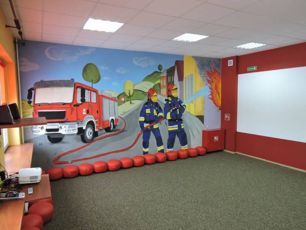 Pierwsza część multimedialna, w której wyświetlane są różnego rodzaju filmy i prezentacje mówiące o zagrożeniach pożarowych. Ponadto w sali zamieszczono podstawowe urządzenia przeciwpożarowe w postaci gaśnicy, hydrantu wewnętrznego czy systemu sygnalizacji pożarowej. Dzieci przy pomocy fantomów będą mogły uczyć się także zasad udzielania pierwszej pomocy.