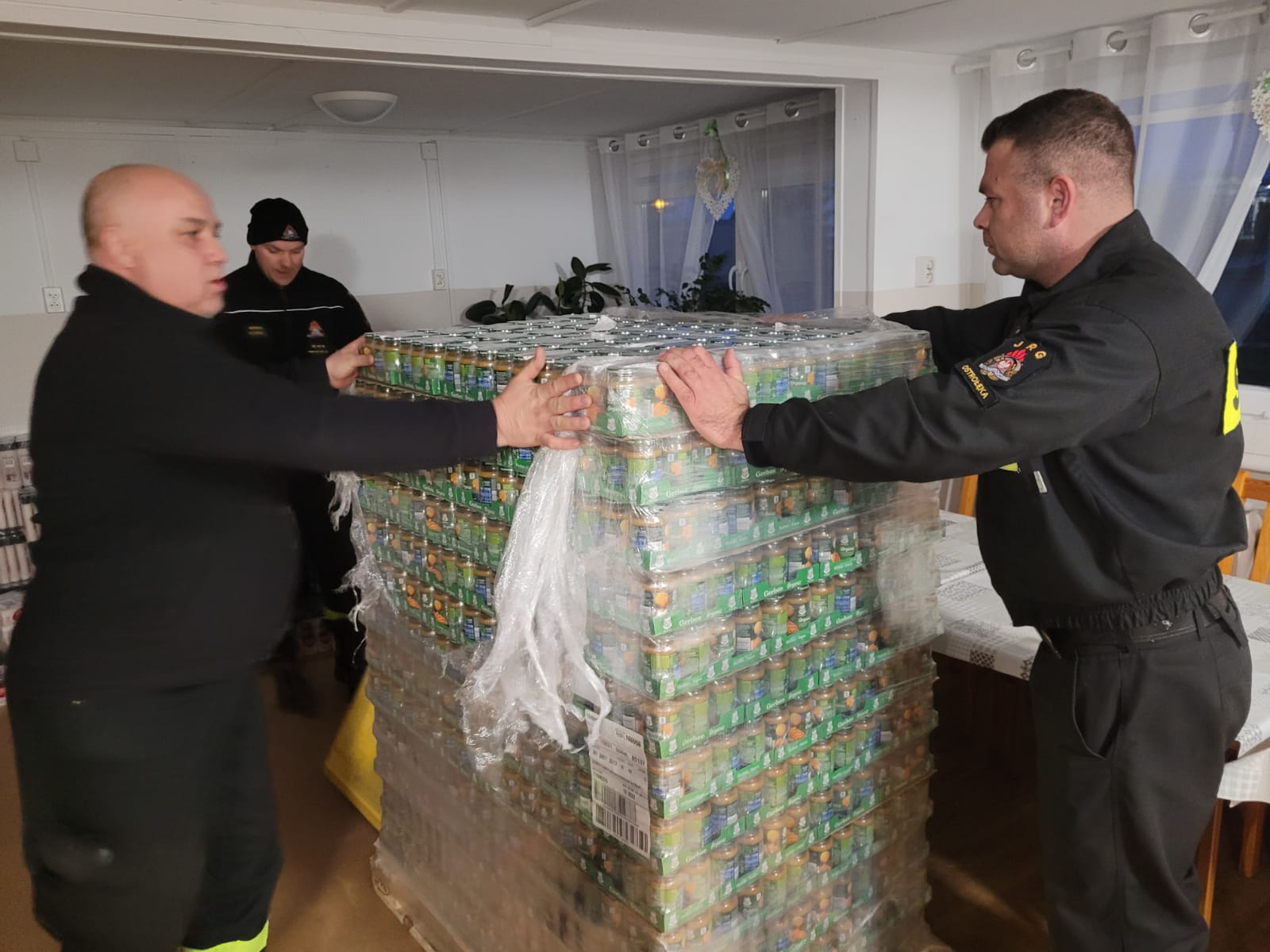 Pomoc strażaków polegała na pilnym rozładunku samochodu ciężarowego który przywiózł żywność,