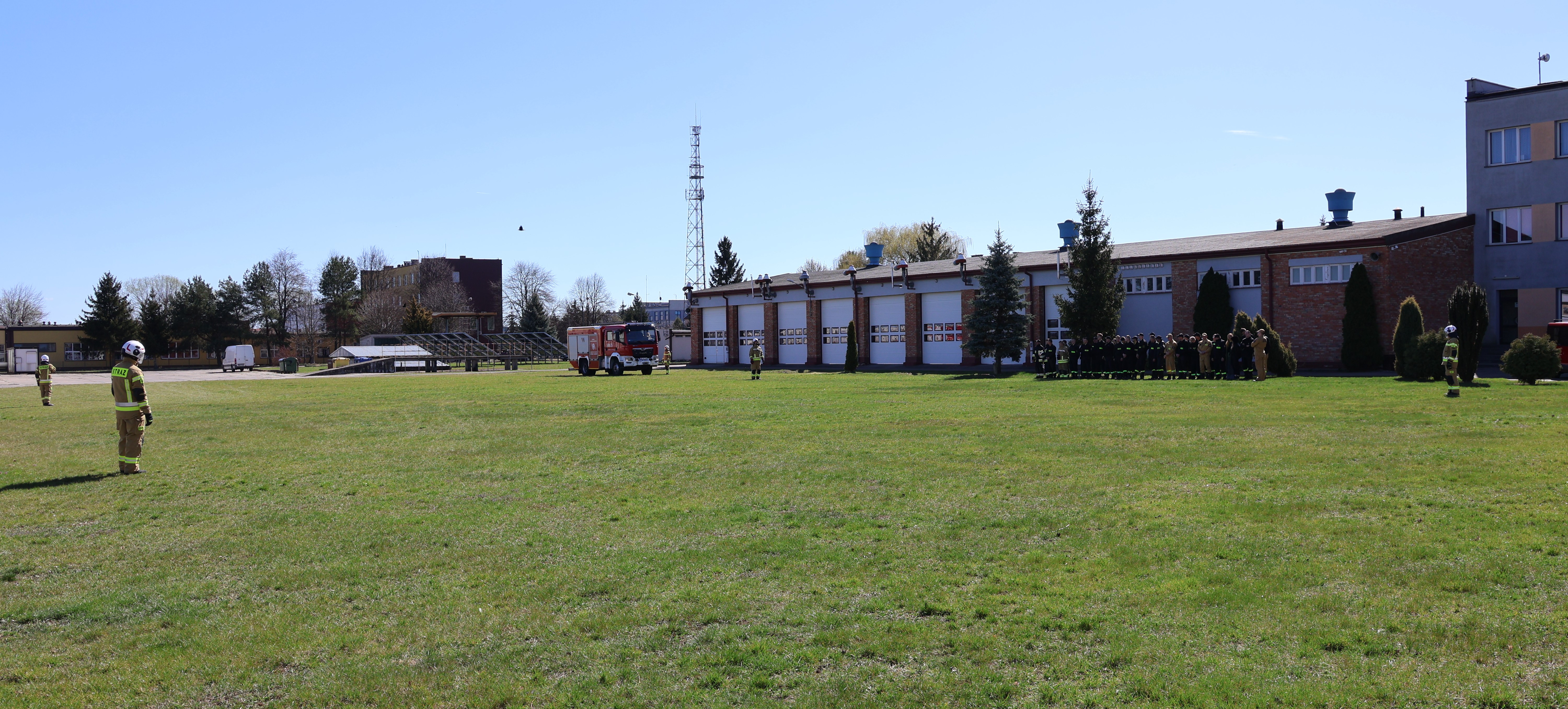 Po zakończeniu części teoretycznej, uczestnicy przystąpili do ćwiczenia praktycznego na boisku sportowym, zlokalizowanym na terenie tutejszej Komendy. W trakcie zajęć praktycznych przećwiczono procedurę przyjęcia statku powietrznego. Obejmowało to m. in. inspekcję miejsca lądowania pod kątem potencjalnych zagrożeń, nawiązywanie korespondencji radiowej ze statkiem powietrznym oraz zabezpieczenie i nadzorowanie procedury startu i lądowania.