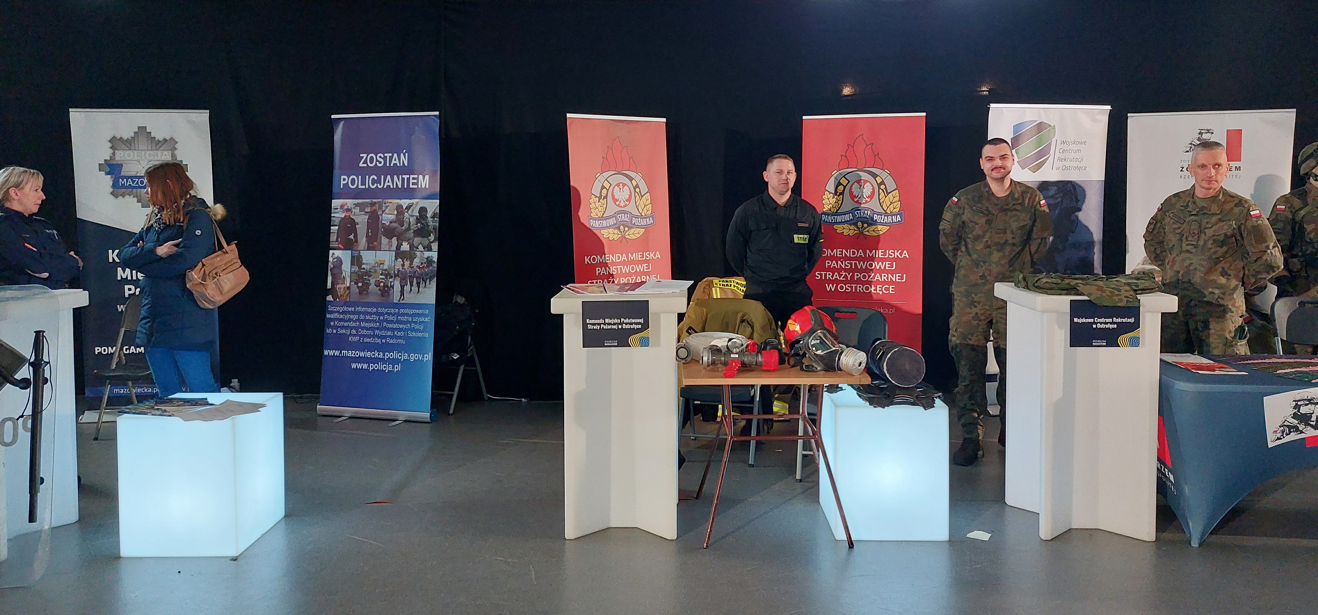 Komenda Miejska Państwowej Straży Pożarnej w Ostrołęce dołączyła do wydarzenia, wystawiając swoje stanowisko promujące zawód strażaka i zachęcające do wstąpienia w szeregi Państwowej Straży Pożarnej. Uczniowie mieli możliwość zapoznania się z zawodem strażaka oraz z wymaganiami stawianymi przy naborze do służby.