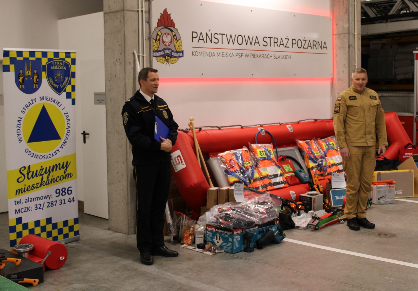 Następnie przystąpiono do przekazania nowoczesnego sprzętu ratowniczego oraz lekkiego samochodu ratowniczego, zakupionego dzięki wygranym projektom Budżetu Obywatelskiego Miasta Piekary Śląskie.