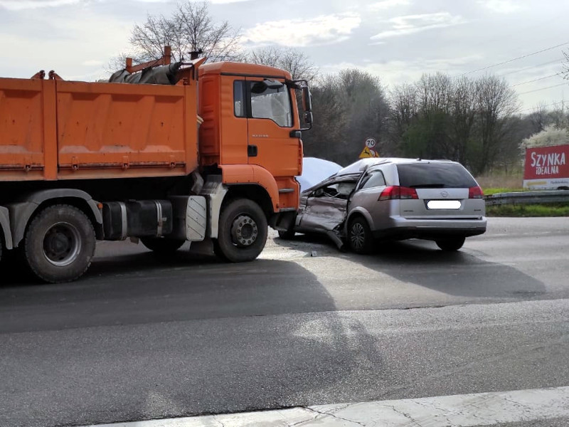 Po przybyciu na miejsce zdarzenia, kierujący działaniami ratowniczymi po dokonaniu rozpoznania potwierdził, że na skrzyżowaniu ul. Pod Lipami z DW911, doszło do zderzenia samochodu osobowego z samochodem ciężarowym. Kierujący samochodami znajdowali się poza pojazdami. Kierujący sami opuścili pojazdy. Jeden z nich znajdował pod opieką zespołu ratownictwa medycznego.