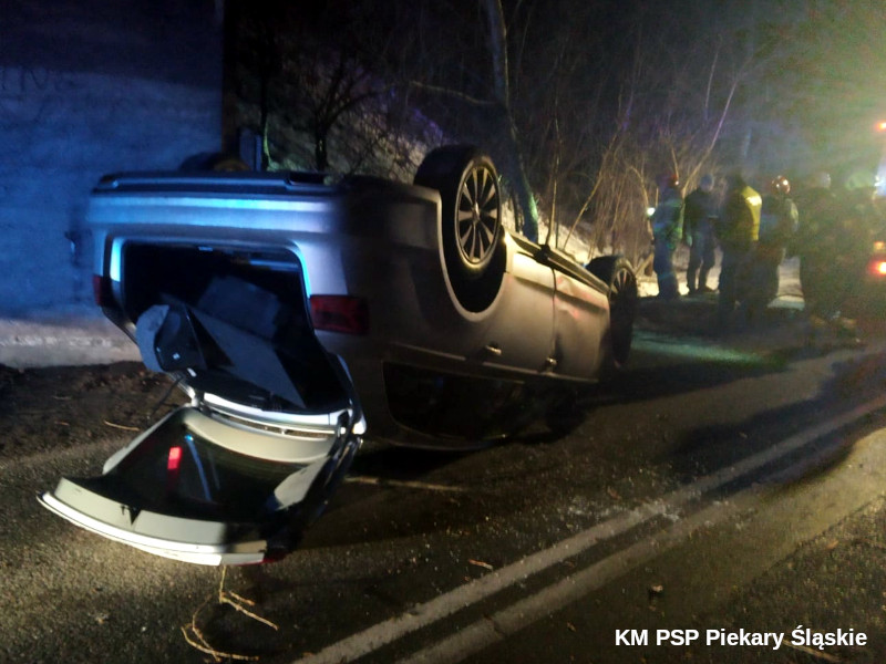 W dniu 1 lutego 2021 r. o godz. 18:42 stanowisko kierowania Komendanta Miejskiego PSP w Piekarach Śląskich otrzymało zgłoszenie z WCPR (formatka) o zdarzeniu drogowym na ulicy Sadowskiego w Piekarach Śląskich. Z treści formatki wynikało że kierujący samochodem osobowym marki Audi uderzył w przydrożne drzewo, a następnie dachował.