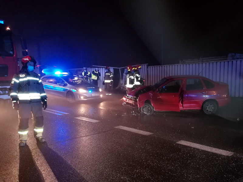 Po dojeździe na miejsce zdarzenia i przeprowadzeniu rozpoznania Kierujący Działaniami Ratowniczymi potwierdził, że samochód uderzył w ogrodzenie magazynu budowlanego. Nie stwierdzono oznak pożaru. Kierujący i pasażer, w chwili przybycia zastępów straży pożarnej na miejsce zdarzenia, znajdowali się poza pojazdem. Na miejsce zdarzenia Kierujący Działaniami Ratowniczymi zadysponował zespół ratownictwa medycznego. Po przybyciu na miejsce zdarzenia oraz po przebadaniu poszkodowanych ratownicy ZRM zadecydowali o zabraniu kierowcy do Wojewódzkiego Szpitala Chirurgii Urazowej w Piekarach Śląskich.