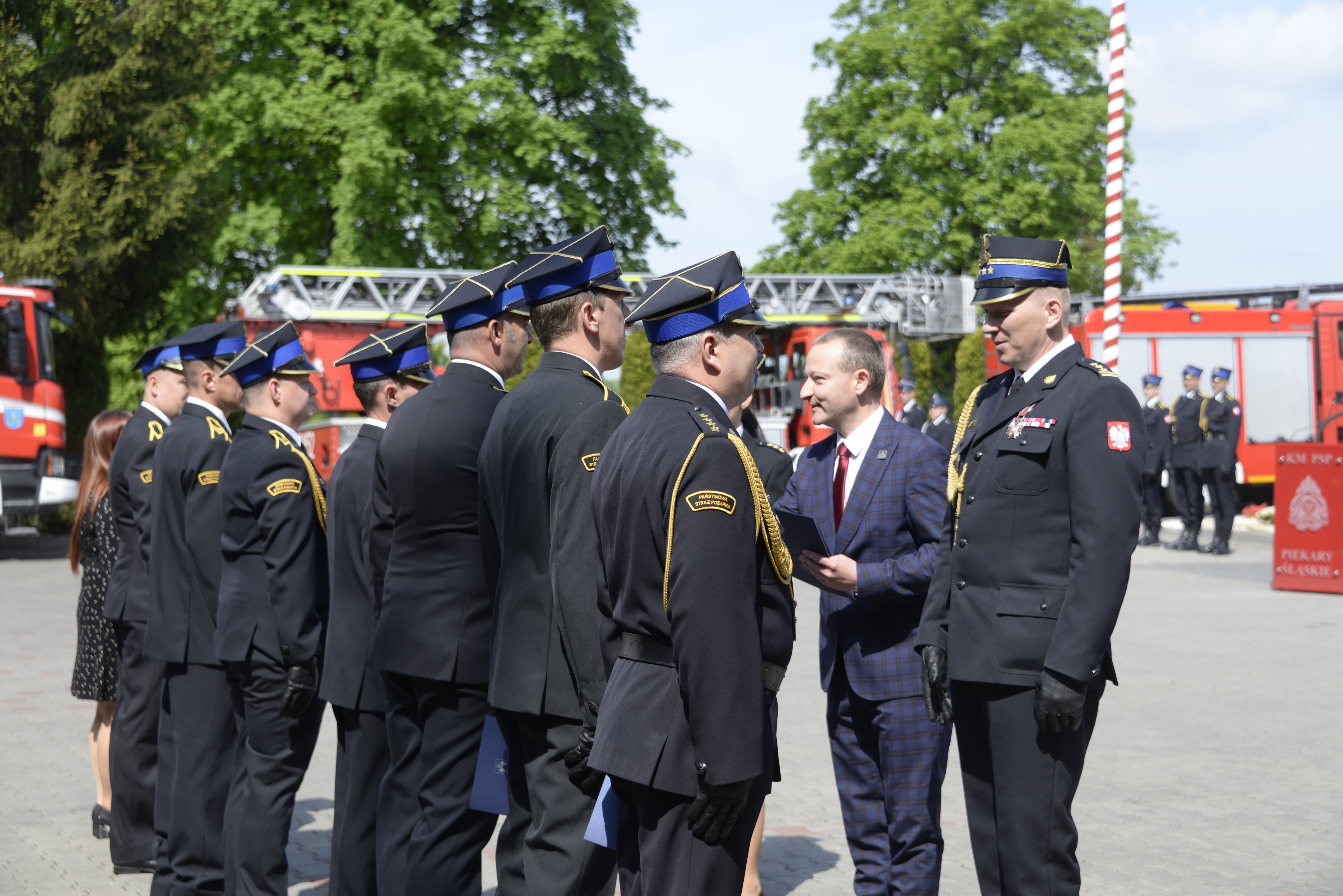 Podczas uroczystej zbiórki Zastępca Prezydenta Miasta Piekary Śląskie Pan Paweł Słota wręczył nagrody pieniężne, przyznane przez Prezydenta Miasta Piekary Śląskie Panią Sławę Umińską - Duraj, wyróżniającym się funkcjonariuszom i pracownikowi cywilnemu komendy miejskiej, a także dokonał symbolicznego przekazania sprzętu ratowniczego i wyposażenia piekarskim jednostkom Ochotniczych Straży Pożarnych z Brzezin Śląskich oraz Dąbrówki Wielkiej, zakupionego w ramach piekarskiego budżetu obywatelskiego.
