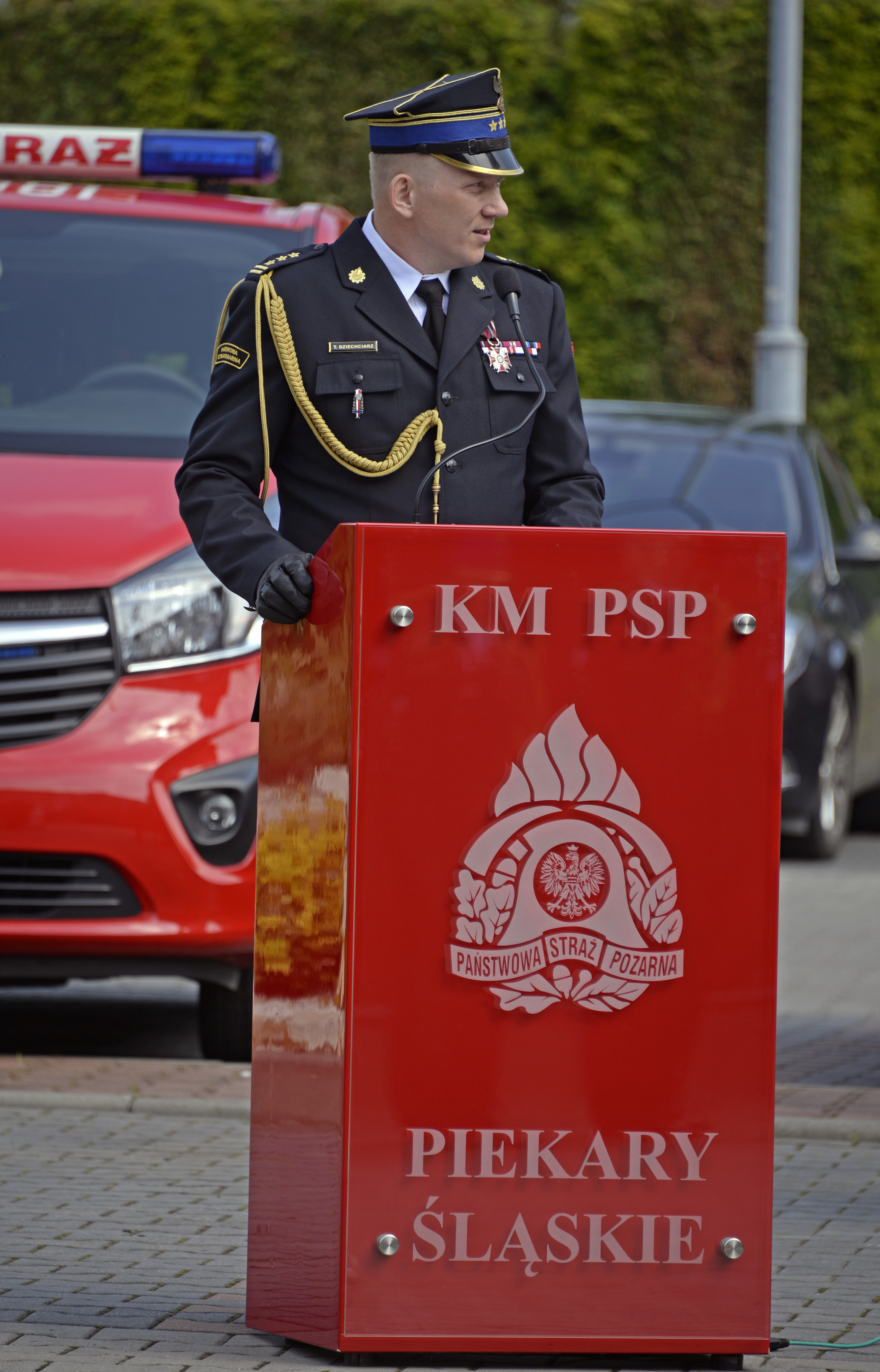 Głos zabrał Komendant Miejski Państwowej Straży Pożarnej w Piekarach Śląskich, st. bryg. Tomasz Dziechciarz, który powitał zaproszonych gości. Komendant podczas wystąpienia podsumował dokonania piekarskich strażaków w minionym roku, przedstawił plany rozwoju komendy miejskiej, a także złożył podziękowania Śląskiemu Komendantowi Wojewódzkiemu Państwowej Straży Pożarnej nadbryg. Jackowi Kleszczewskiemu, Prezydentowi Miasta Piekary Śląskie Pani Sławie Umińskiej - Duraj na ręce Zastępcy Prezydenta Miasta Pana Pawła Słoty oraz Przewodniczącemu Rady Miasta Piekary Śląskie Panu Tomaszowi Wesołowskiemu wraz z Radnymi za udzielone wsparcie w realizacji zadań.