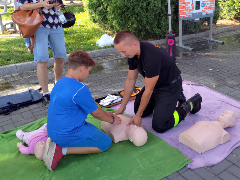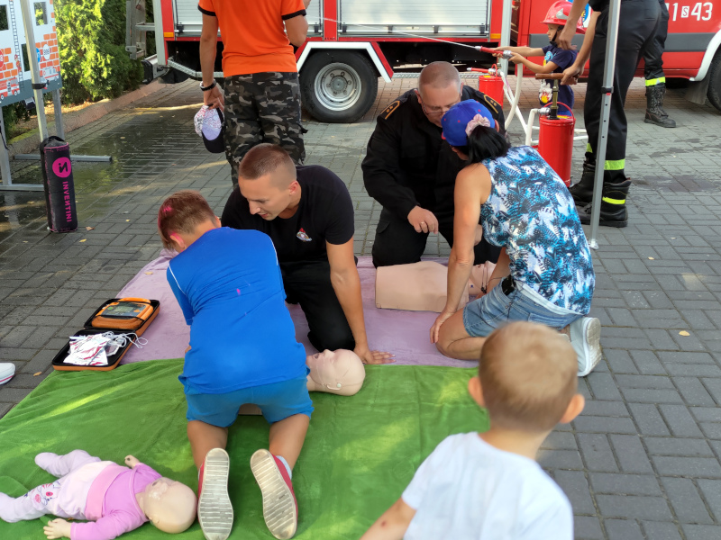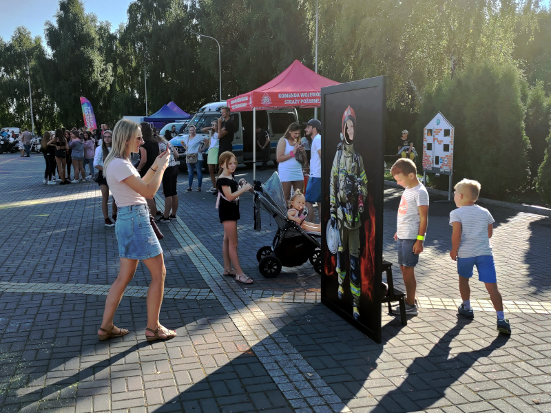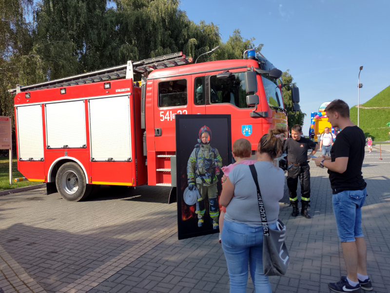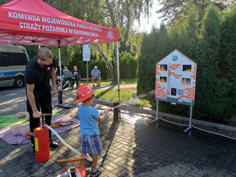 Dla odwiedzających przygotowano wiele atrakcji. Można było wsiąść do samochodu pożarniczego, a pod opieką ratownika wziąć również do ręki strażackie narzędzia. Każdy zainteresowany mógł nabyć podstawową wiedzę i umiejętności z zakresu pierwszej pomocy i pod okiem ratowników medycznych z piekarskiej straży przećwiczyć na fantomach resuscytację krążeniowo – oddechową. Kolejną atrakcją była specjalna ścianka ze zdjęciem strażaka w ubraniu specjalnym, z wyciętym miejscem na twarz, dzięki której wszyscy chętni mogli zrobić sobie zdjęcie w strażackim mundurze. Ale największym zainteresowaniem cieszył się „symulator gaszenia pożaru”. Zabawa polegała na trafieniu w pięć okien przy pomocy prądu wody podawanego z hydronetki. Każdy, któremu udało się „ugasić pożar” otrzymywał upominek.