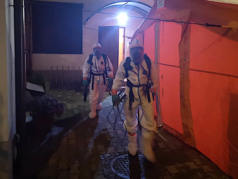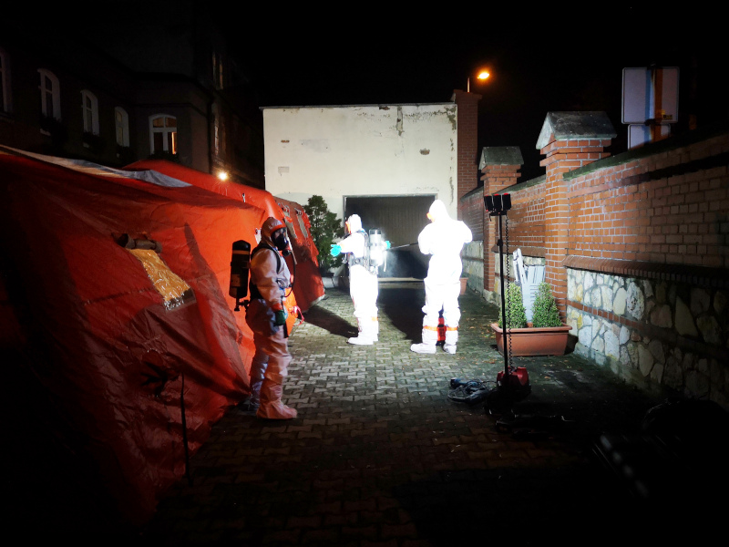 Działania ratowników polegały na zabezpieczeniu miejsca zdarzenia, przeprowadzeniu wywiadu epidemiologicznego (w budynku zakładu znajdowały się osoby z dodatnim wynikiem testu na obecność koronawirusa, na zewnątrz obiektu nie stwierdzono zagrożenia) oraz montażu, wspólnie z członkami grupy wsparcia, pięciu śluz wewnątrz Zakładu Opiekuńczo Leczniczego.