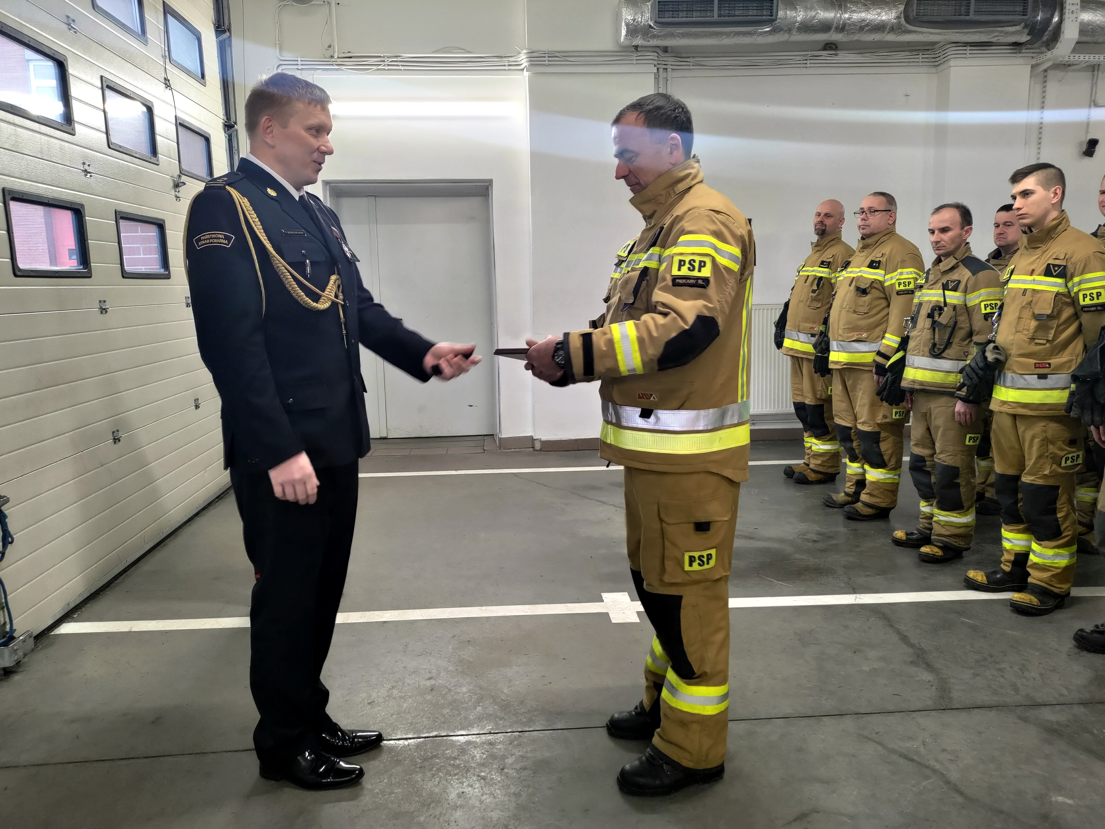 Uroczystość była okazją do podsumowań. Komendant Miejski, w imieniu wszystkich podziękował st. ogn. Adamowi Manowskiemu za lata wytężonej służby oraz włożony w nią trud i poświęcenie, życzył sukcesów w realizacji planów życiowych oraz wręczył mu pamiątkową, grawerowaną tabliczkę.