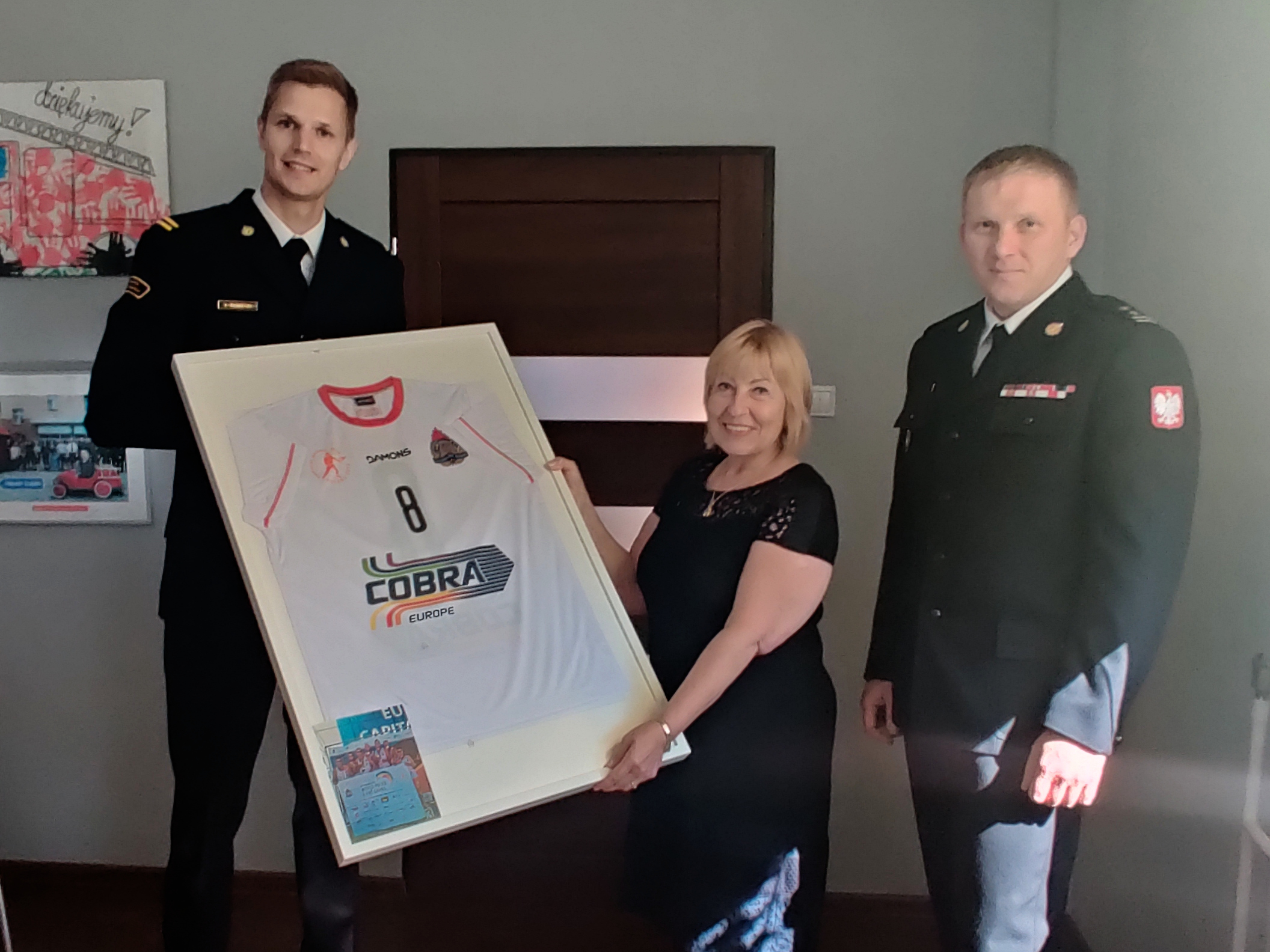 2 września 2022 roku miało miejsce spotkanie komendanta miejskiego Państwowej Straży Pożarnej w Piekarach Śląskich bryg. Tomasza Dziechciarza z prezesem zarządu firmy Cobra Europe Panią Marią Namdakow. W spotkaniu uczestniczył funkcjonariusz komendy sekc. Łukasz Żłobecki, który w dniach 20 lipca – 1 sierpnia 2022 roku reprezentował Państwową Straż Pożarną oraz piekarską komendę, podczas Światowych Igrzysk Policjantów i Strażaków w Hadze w siatkówce halowej oraz plażowej. Strażak zdobył złoty medal w siatkówce halowej 6 osobowej, srebrny medal w siatkówce halowej 2 osobowej oraz brązowy medal w siatkówce plażowej. Spotkanie w piekarskiej komendzie było okazją do złożenia na ręce Pani Marii Namdakow, podziękowań firmie Cobra Europe za udzielenie wsparcia finansowego, bez którego udział sekc. Łukasza Żłobeckiego w igrzyskach nie byłby możliwy.