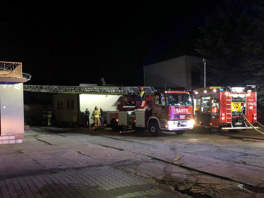 Po przybyciu na miejsce zdarzenia kierujący działaniami ratowniczymi (KDR) potwierdził, że pożarem całkowicie objęta jest wiata przyległa do dwukondygnacyjnego budynku oraz część elewacji samego budynku. Obecny na miejscu pracownik potwierdził, że w budynku nikt się nie znajduje.