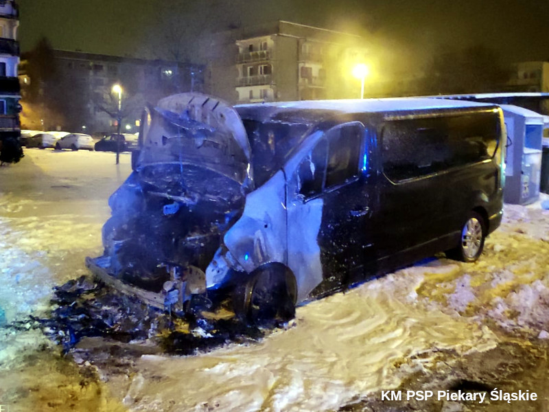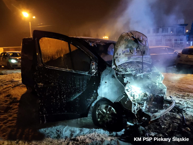 10 lutego 2021 roku o godz. 23:43 stanowisko kierowania Komendanta Miejskiego PSP w Piekarach Śląskich przyjęło zgłoszenie z Wojewódzkiego Centrum Powiadamiania Ratunkowego w Katowicach (formatka), o treści: „Pożar dostawczaka obok śmietnika”. Po przybyciu zastępów straży pożarnej na miejsce zdarzenia, kierujący działaniami ratowniczymi, w wyniku przeprowadzonego rozpoznania, potwierdził, że w zaparkowanym na parkingu samochodzie dostawczym marki Opel Vivaro, pali się komora silnika. Obok znajduje się zaparkowany samochód osobowy marki Ford Focus.