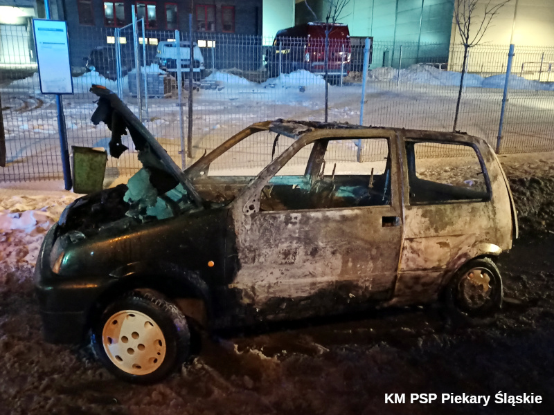 9 lutego 2021 roku o godz. 20:45 stanowisko kierowania Komendanta Miejskiego PSP w Piekarach Śląskich przyjęło zgłoszenie z Wojewódzkiego Centrum Powiadamiania Ratunkowego w Katowicach (formatka), o treści: "Koło piekarni pożar auta, nie ma osób poszkodowanych". Po przybyciu zastępów na miejsce zdarzenia kierujący działaniami ratowniczymi, w wyniku przeprowadzonego rozpoznania, potwierdził pożar samochodu osobowego marki Fiat Seicento. Obecny na miejscu właściciel pojazdu poinformował, że samochód zapalił się w trakcie jazdy z nieznanego powodu.