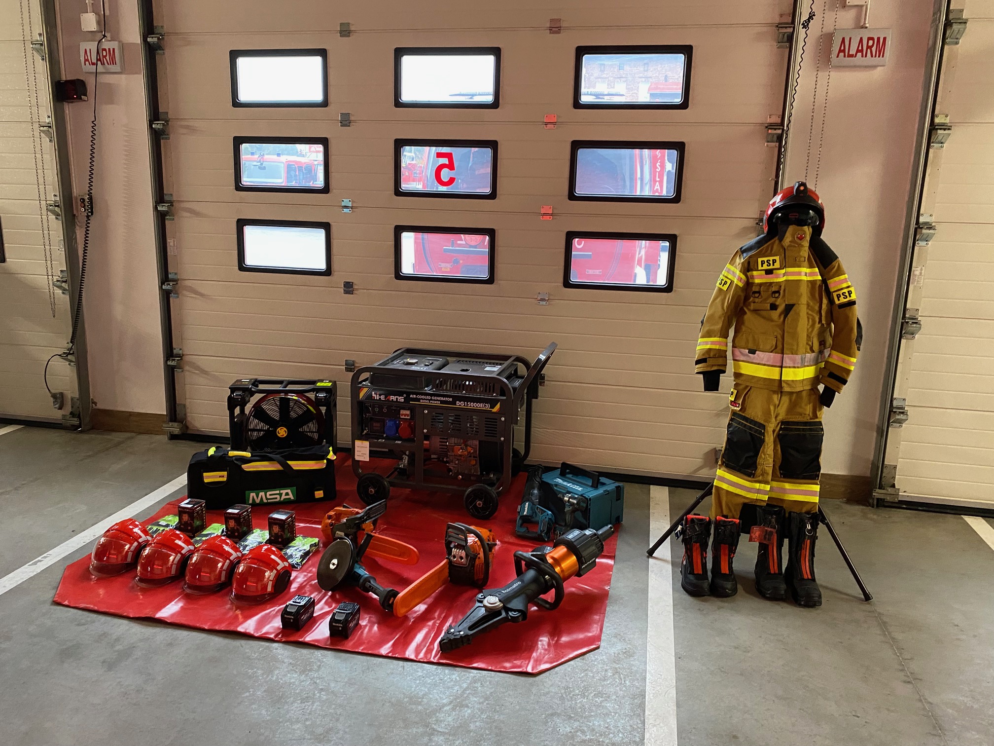 Zaprezentowany sprzęt ratowniczy i wyposażenie osobiste, które pozyskała Komenda Miejska Państwowej Straży Pożarnej w Piekarach Śląskich w roku 2023r. to: