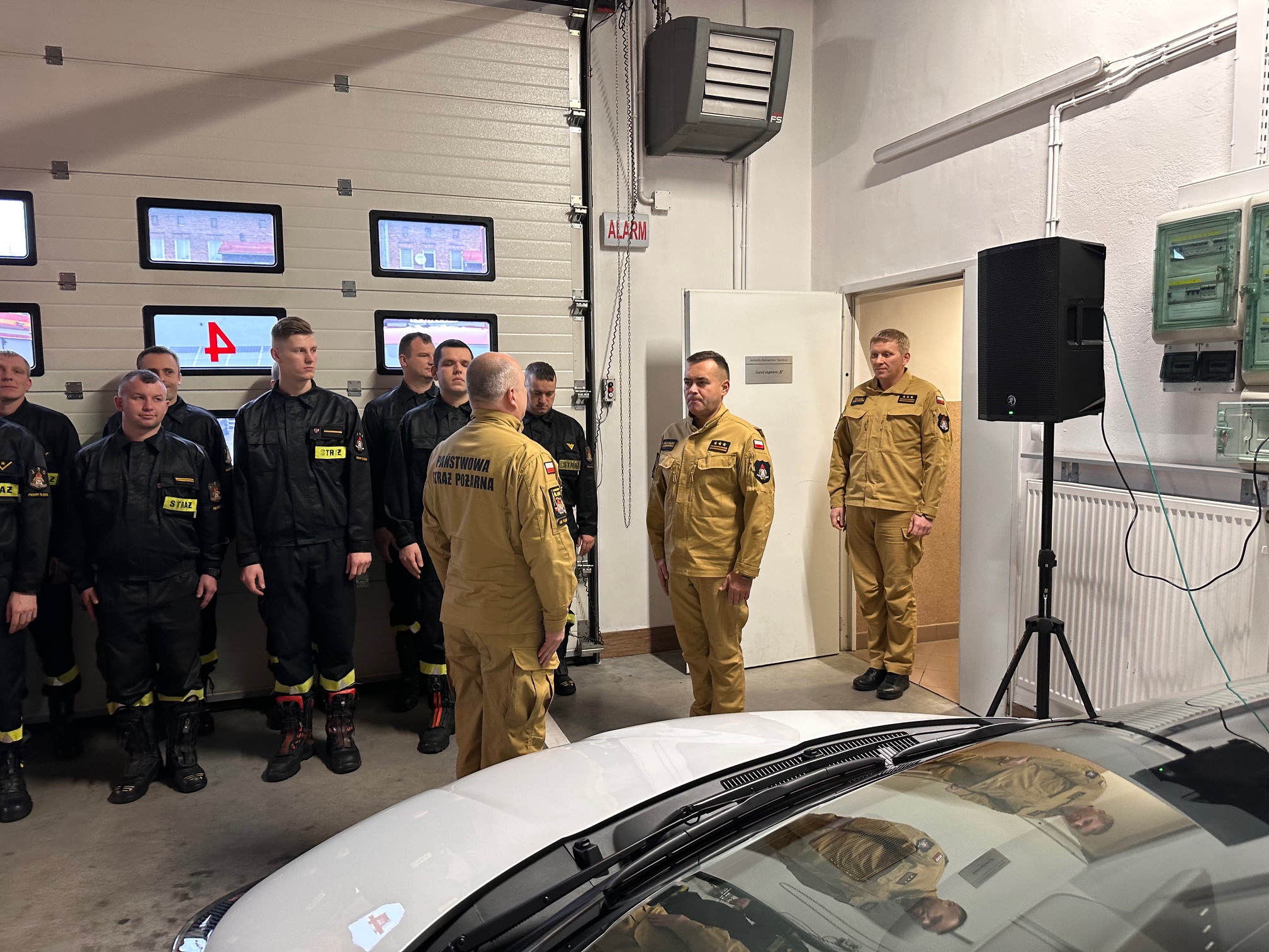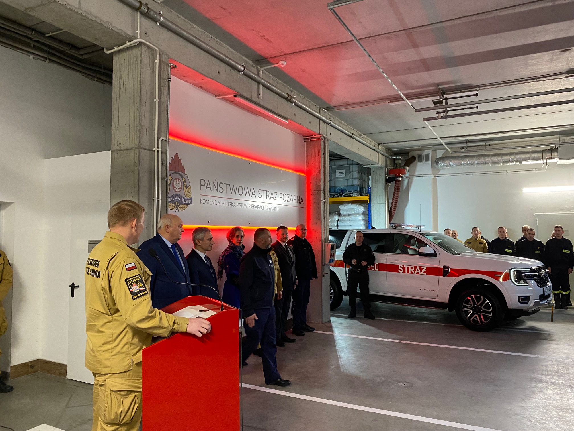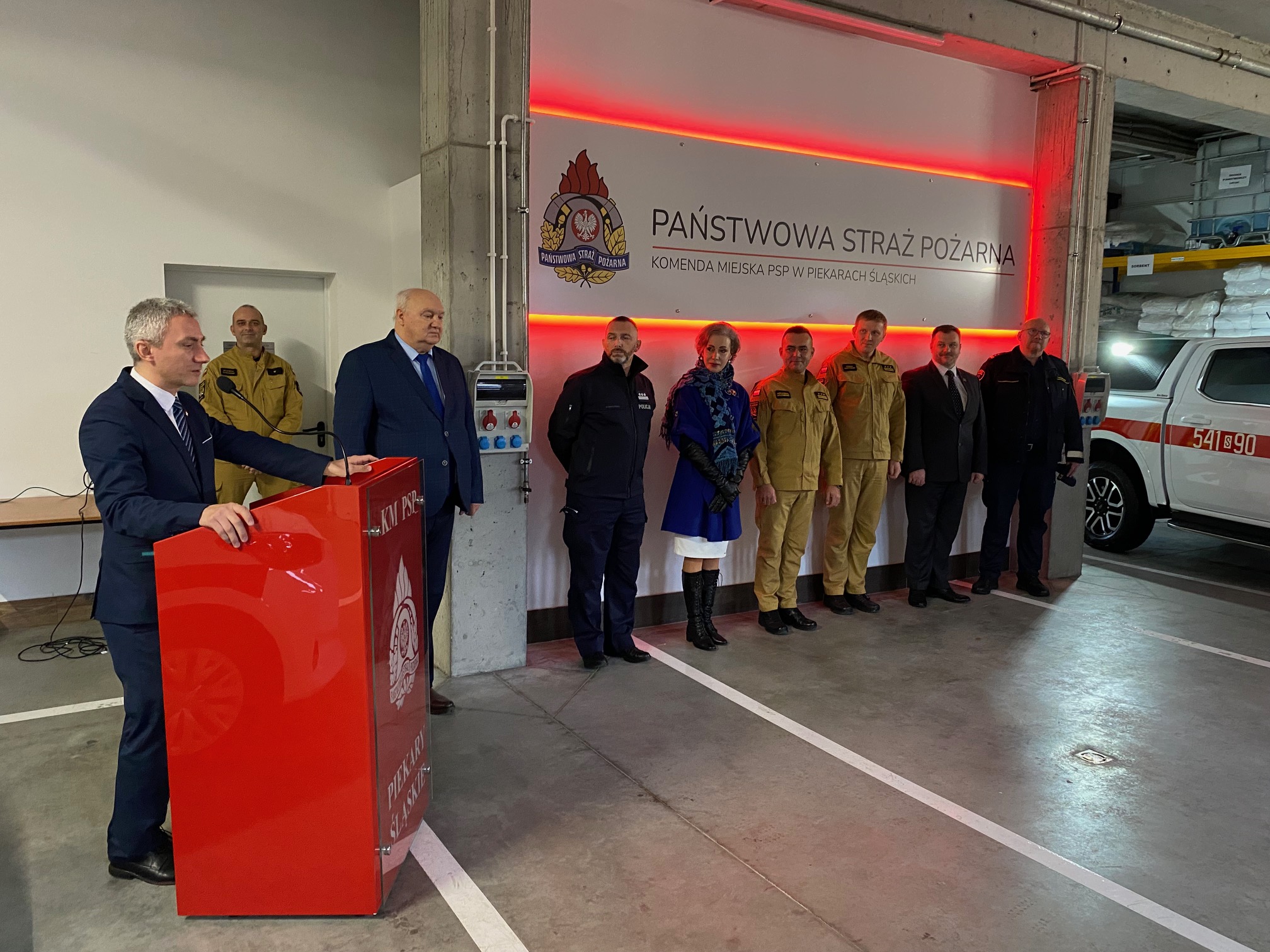 Podczas uroczystej prezentacji obecni byli: poseł na Sejm RP Pan Łukasz Ściebiorowski, Zastępca Śląskiego Komendanta Wojewódzkiego PSP st. bryg. Arkadiusz Krzemiński, Prezydent Miasta Piekary Śląskie Pani Sława Umińska – Kajdan, Przewodniczący Rady Miasta w Piekarach Śląskich Pan Tomasz Wesołowski, Komendant Miejski Policji w Piekarach Śląskich insp. Paweł Dratwiński, Komendant Straży Miejskiej w Piekarach Śląskich Pan Wojciech Golasiński. .