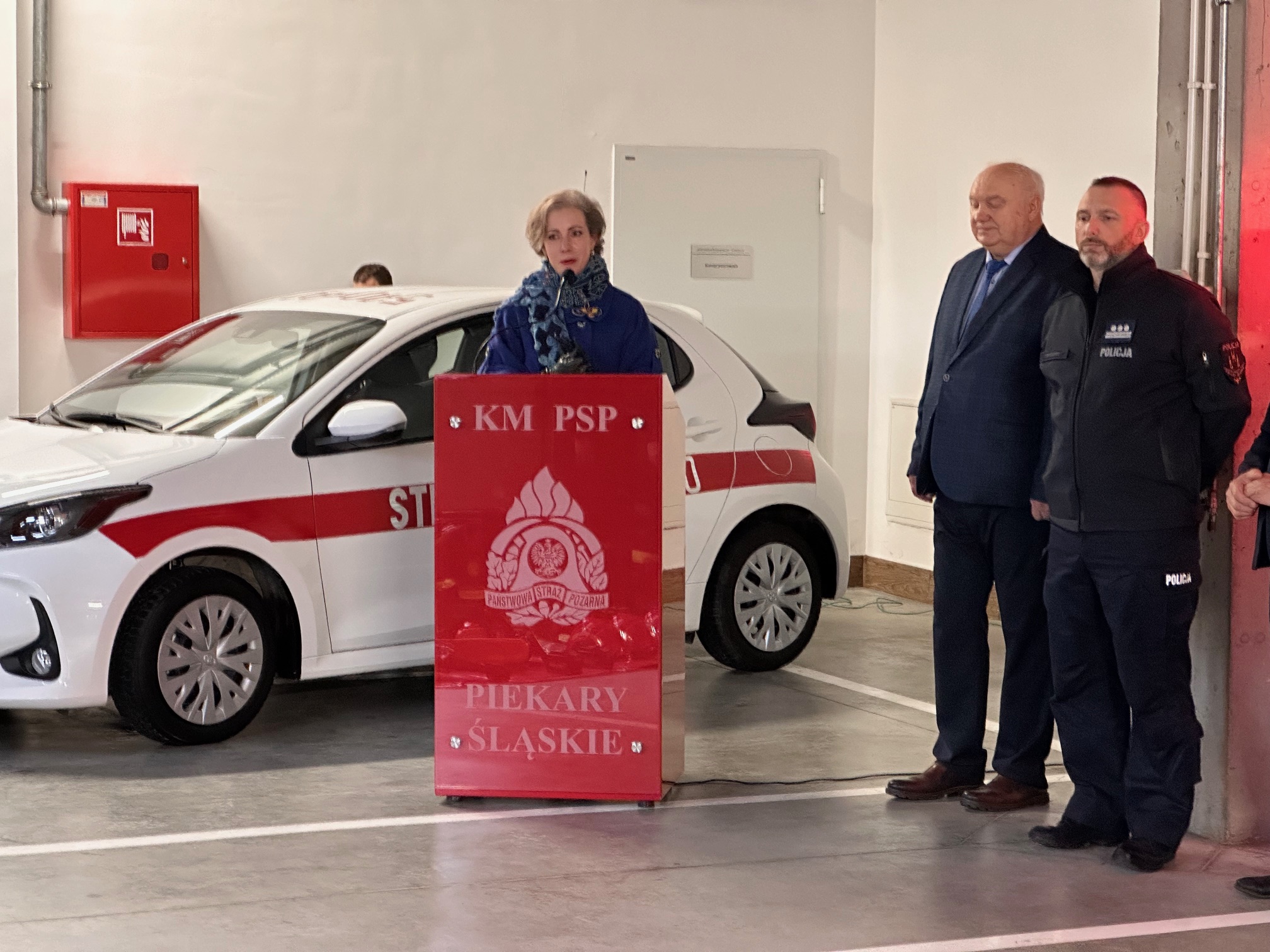 Komendant miejski w swoim wystąpieniu przedstawił podstawowe informacje o pozyskanych samochodach, sprzęcie i wyposażeniu, a także wskazał zewnętrzne źródła finansowania bez których ich zakup nie byłby możliwy. Podziękowania za udzielone wsparcie zostały skierowane do Śląskiego Komendanta Wojewódzkiego PSP nadbryg. Jacka Kleszczewskiego, Prezydenta Miasta Piekary Śląskie Pani Sławy Umińskiej – Kajdan, Przewodniczącego Rady Miasta Piekary Śląskie Pana Tomasza Wesołowskiego wraz z Radnymi, Posła na Sejm RP Pana Łukasza Ściebiorowskiego, który do momentu uzyskania mandatu poselskiego sprawował funkcję Radnego Miasta Piekary Śląskie, a także Prezesa Zarządu Orzeł Biały S.A. Pana Konrada Sznajdera oraz Prezesa Zakładu Gospodarki Komunalnej w Piekarach Śląskich Pana Krzysztofa Ślusarczyka.