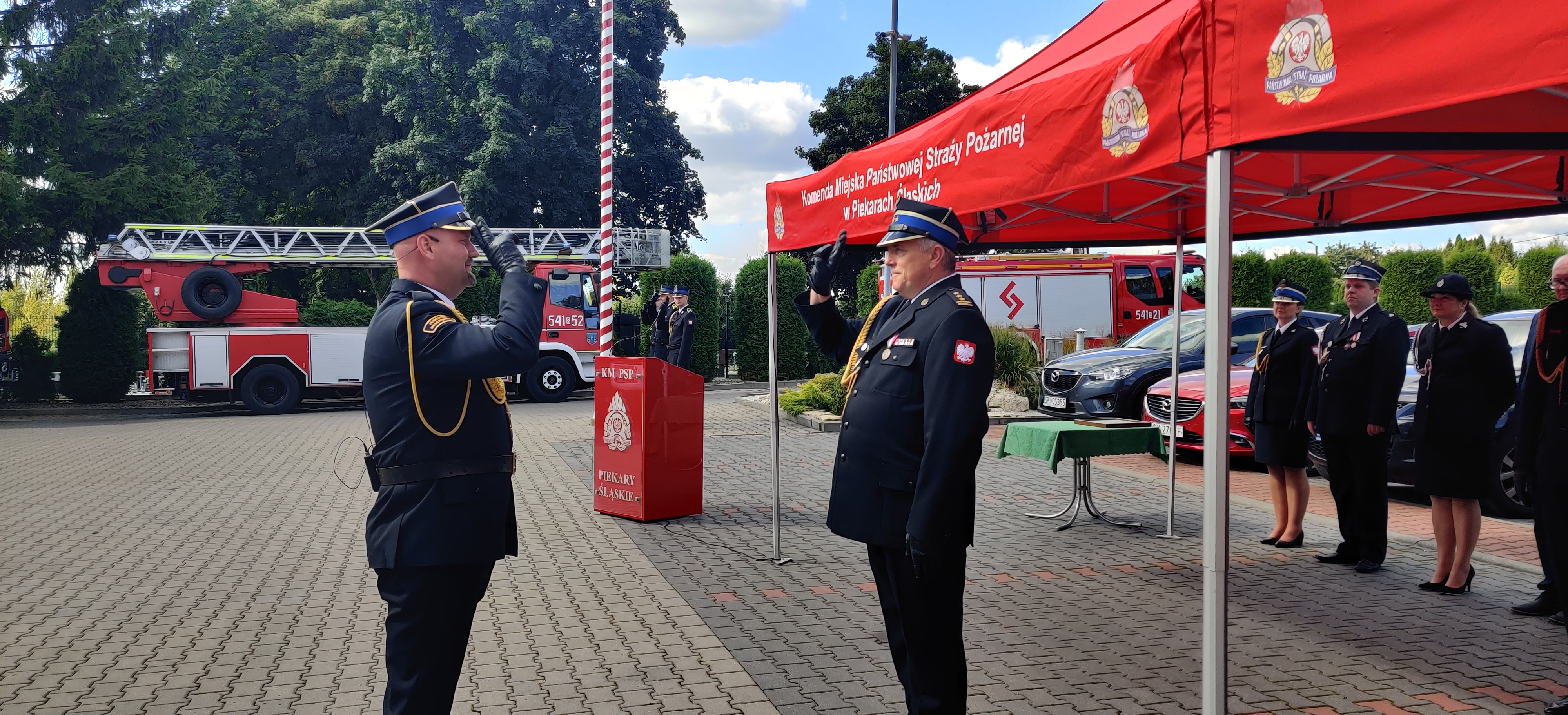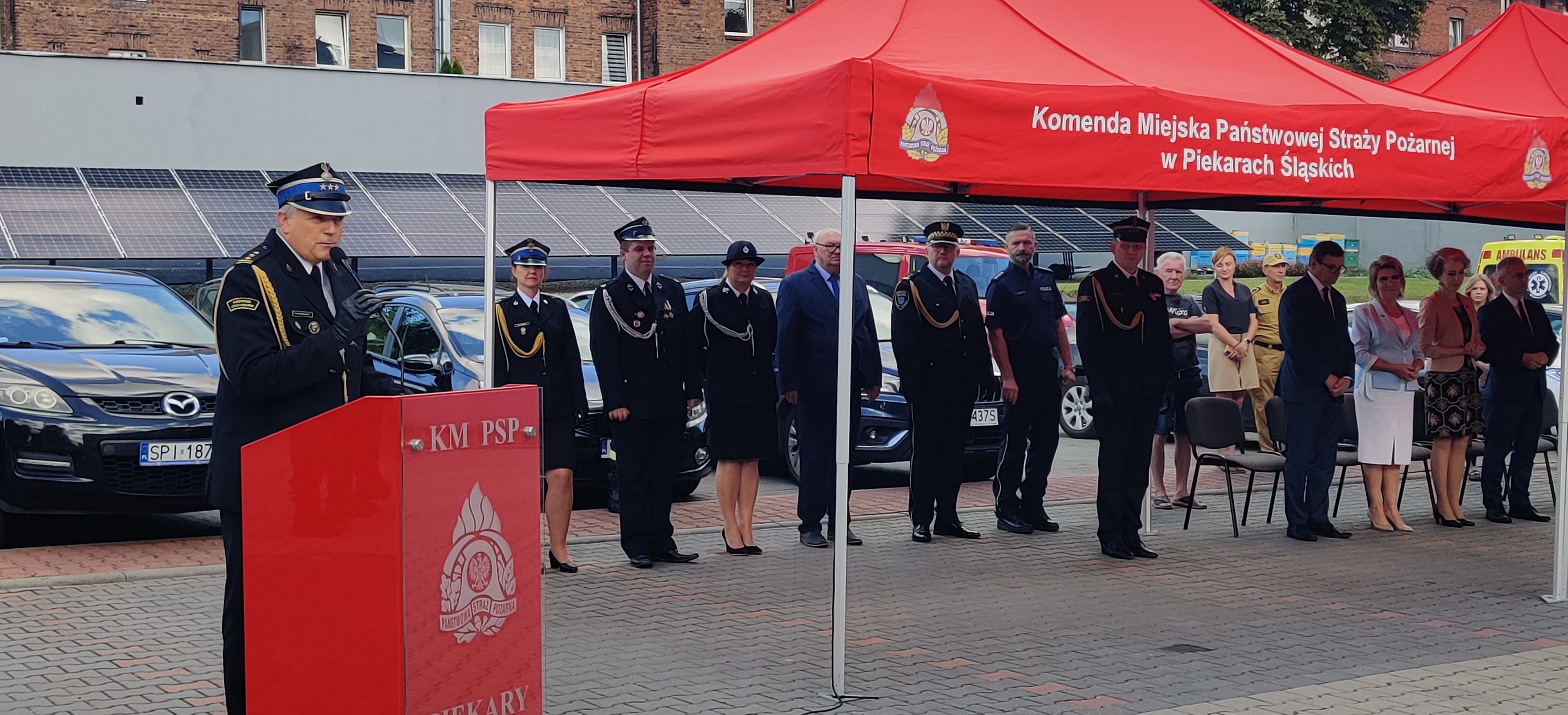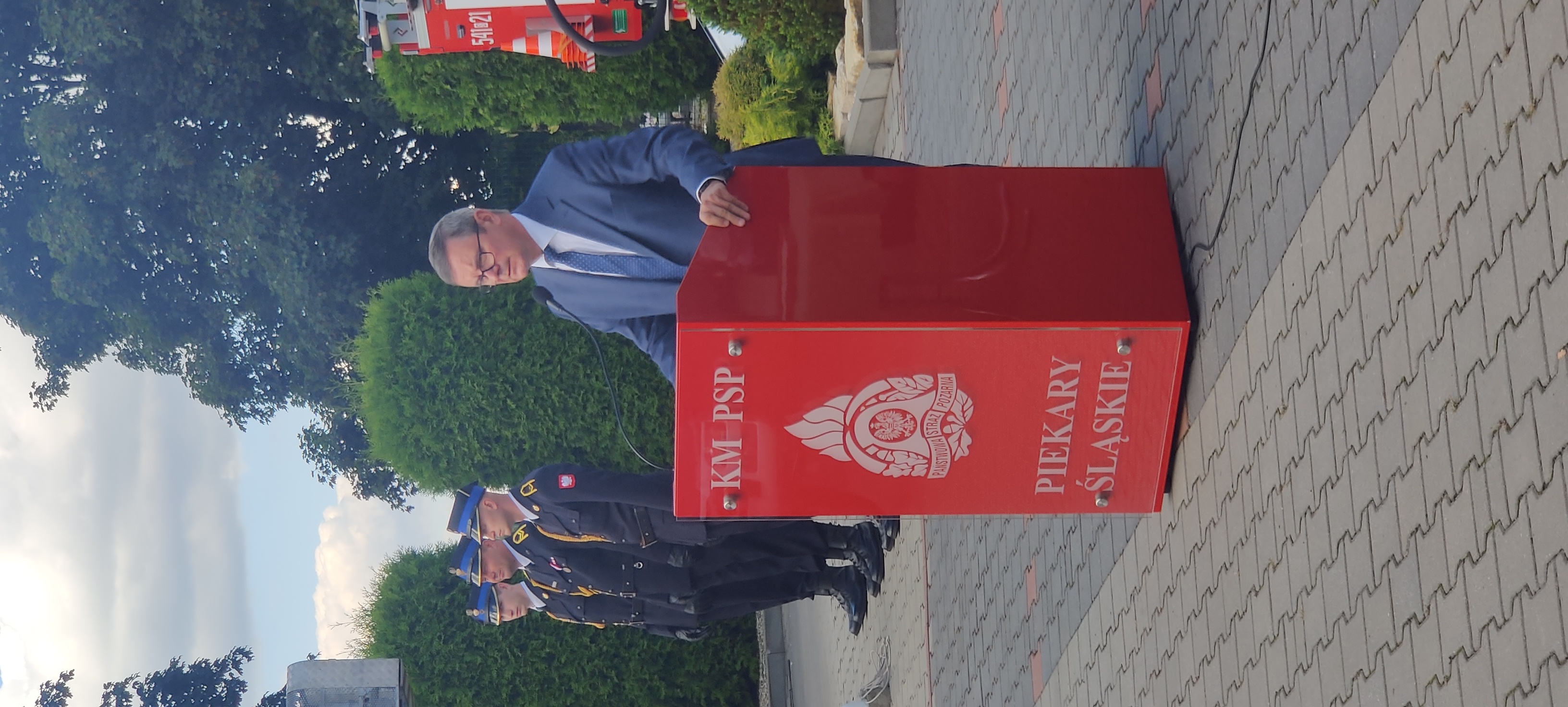 Uroczystość uświetniły także poczty sztandarowe Komendy Miejskiej Państwowej Straży Pożarnej w Piekarach Śląskich, Ochotniczej Straży Pożarnej w Dąbrówce Wielkiej oraz proporzec Młodzieżowej Drużyny Pożarniczej z Ochotniczej Straży Pożarnej w Dąbrówce Wielkiej.